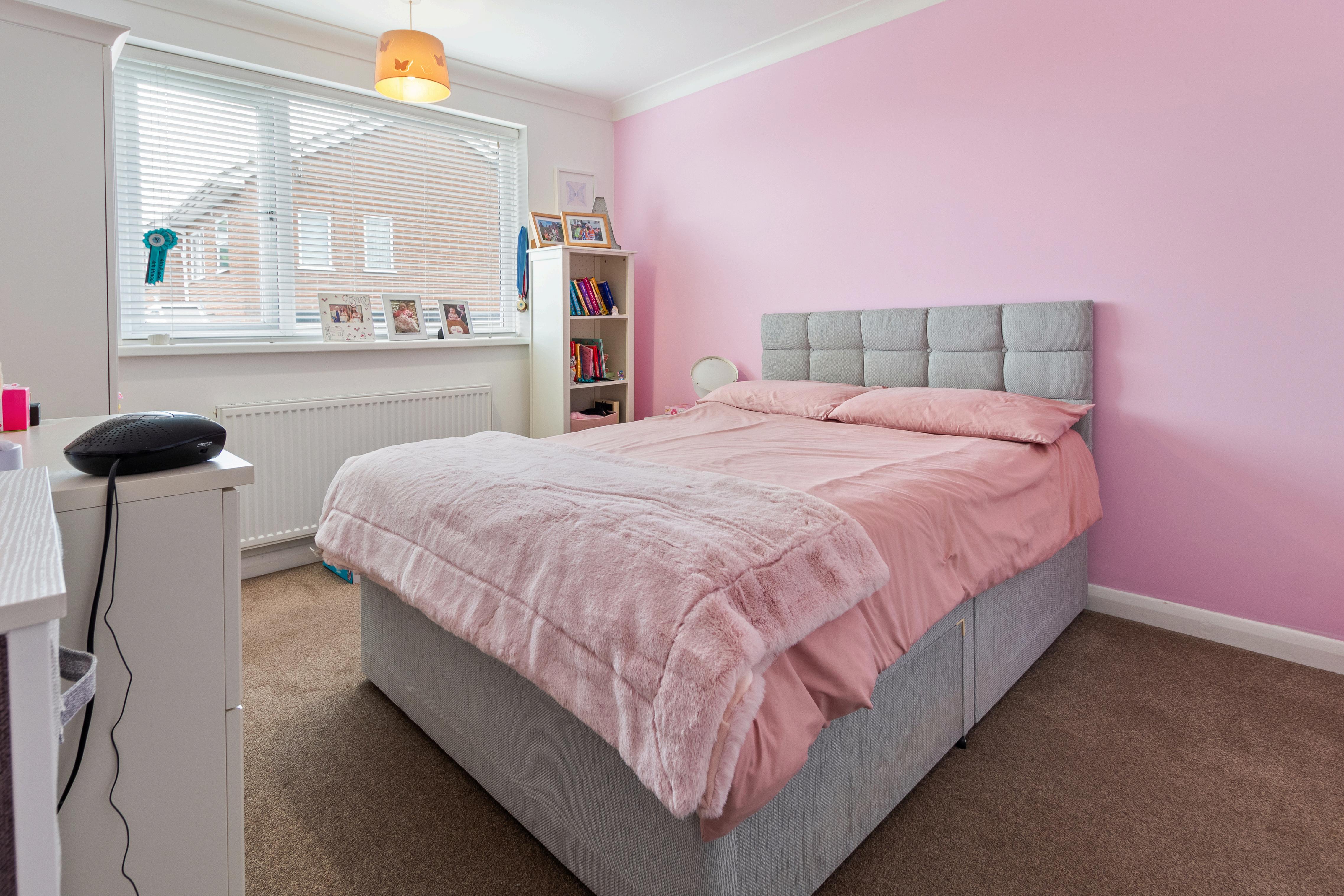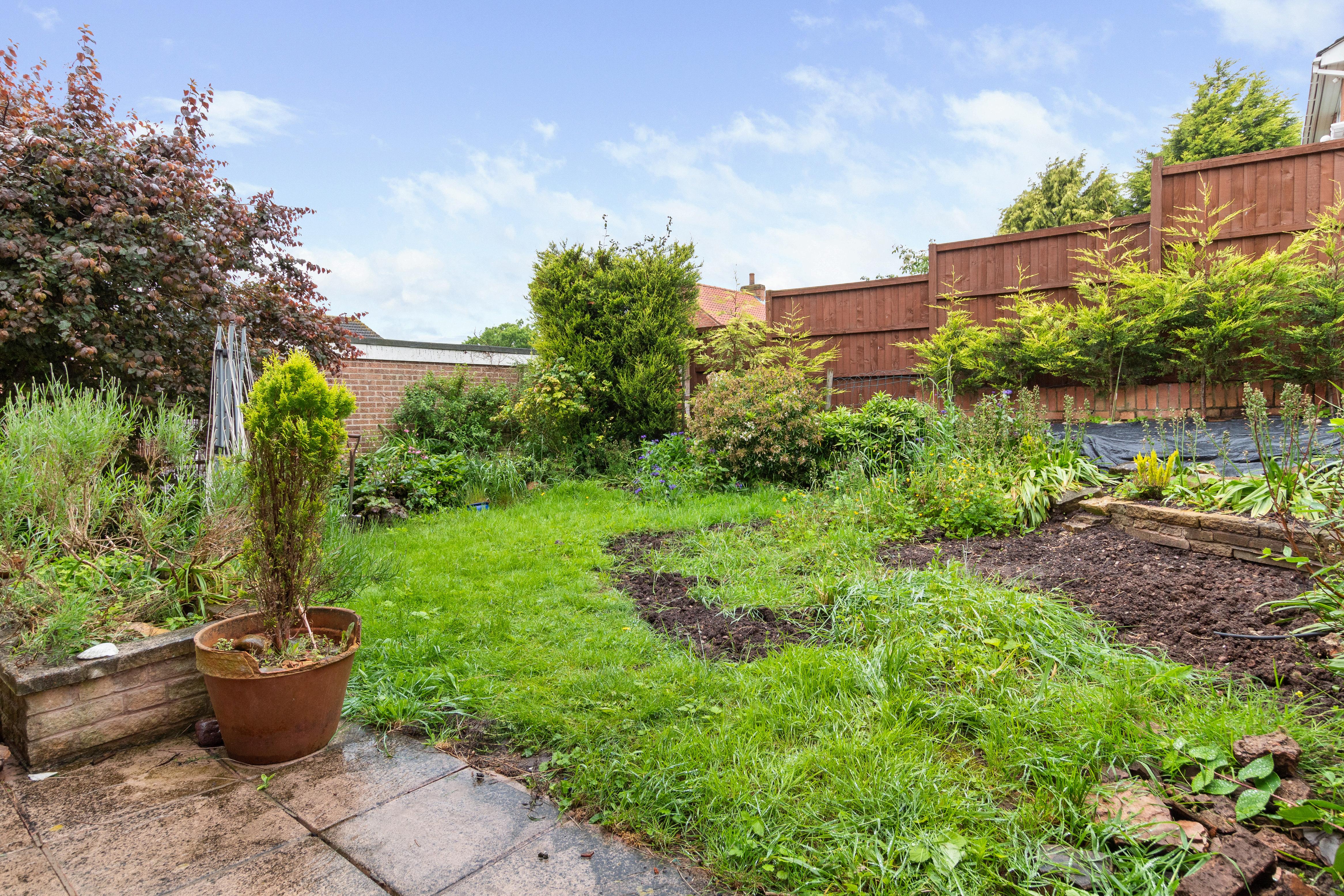 The property boasts a resin driveway leading to a single garage, ensuring ample off-street parking. The front garden features a wellmaintained lawn and a vibrant flower bed, adding to its attractive curb appeal.