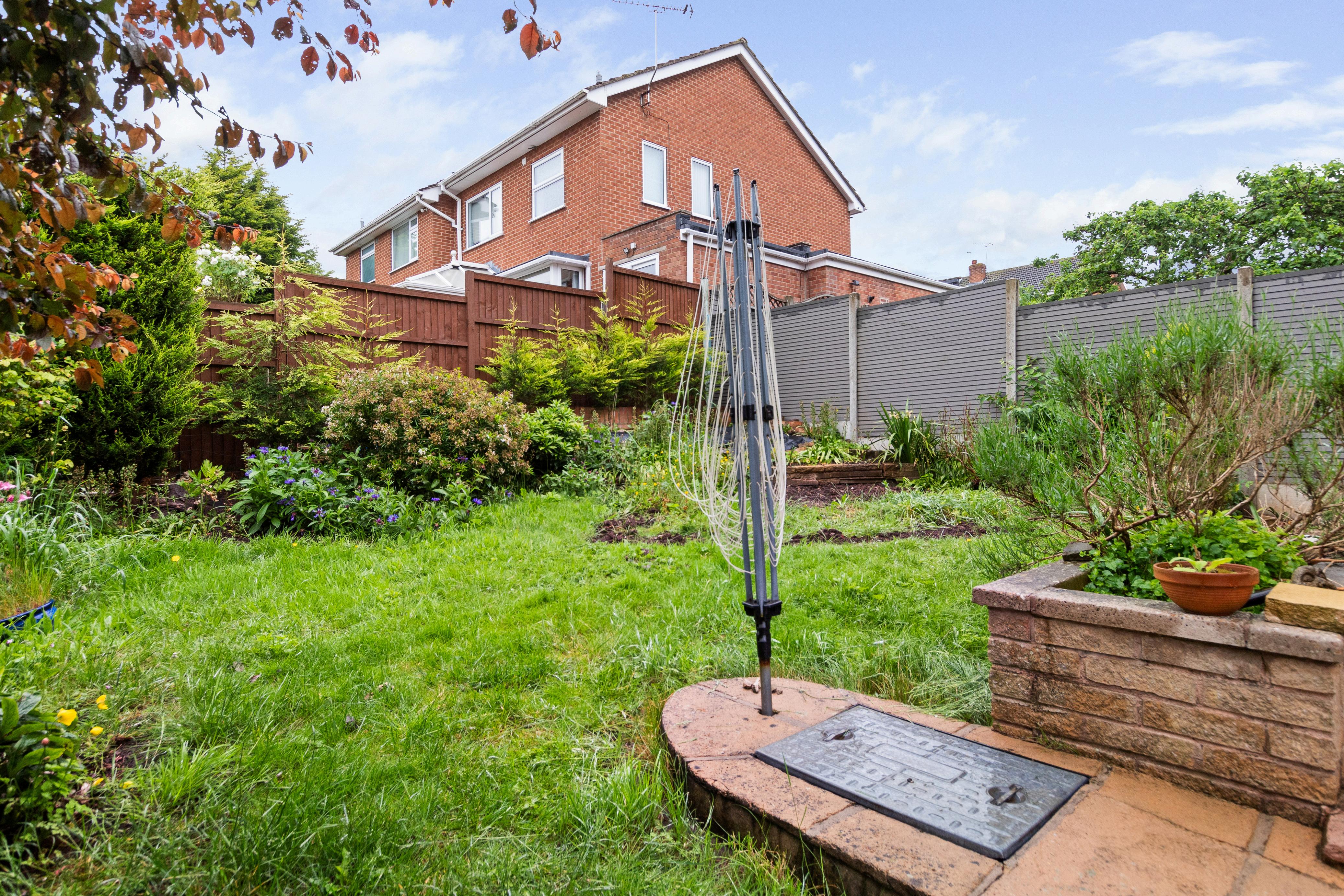 The secure rear garden is equipped with CCTV (two cameras at the front, one at the side, and one at the rear) for added security and peace of mind. The garden features a well-kept lawn, raised flower beds, and mature trees, creating a peaceful outdoor retreat. Additionally, the loft has been boarded out and is accessible via loft ladders, providing extra storage space.