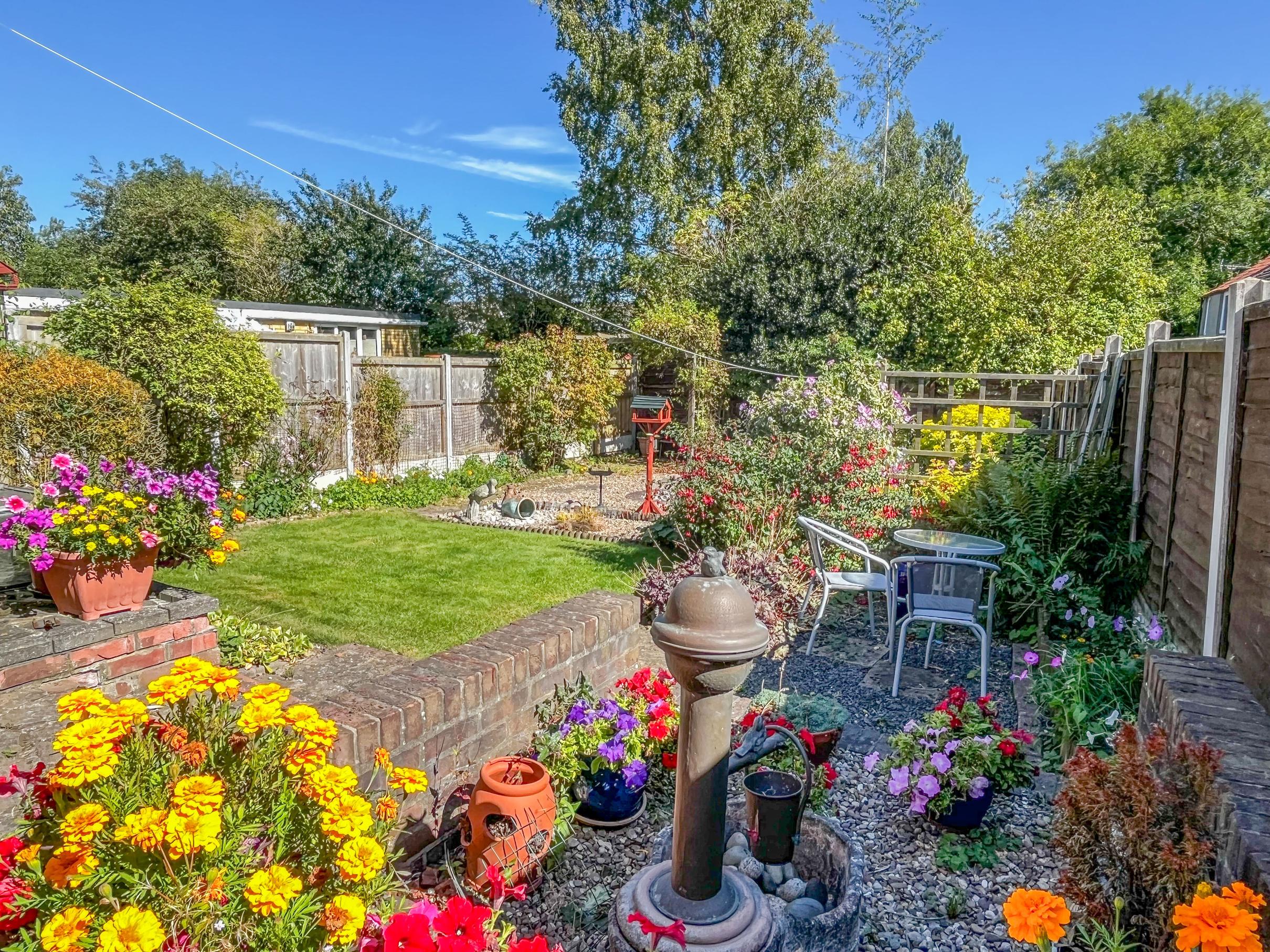 Outside, the property boasts a spacious driveway providing parking space. A garden shed is on hand for storage, and the fully enclosed rear garden is a sanctuary with lush planted borders and a charming seating area, perfect for enjoying the outdoors.