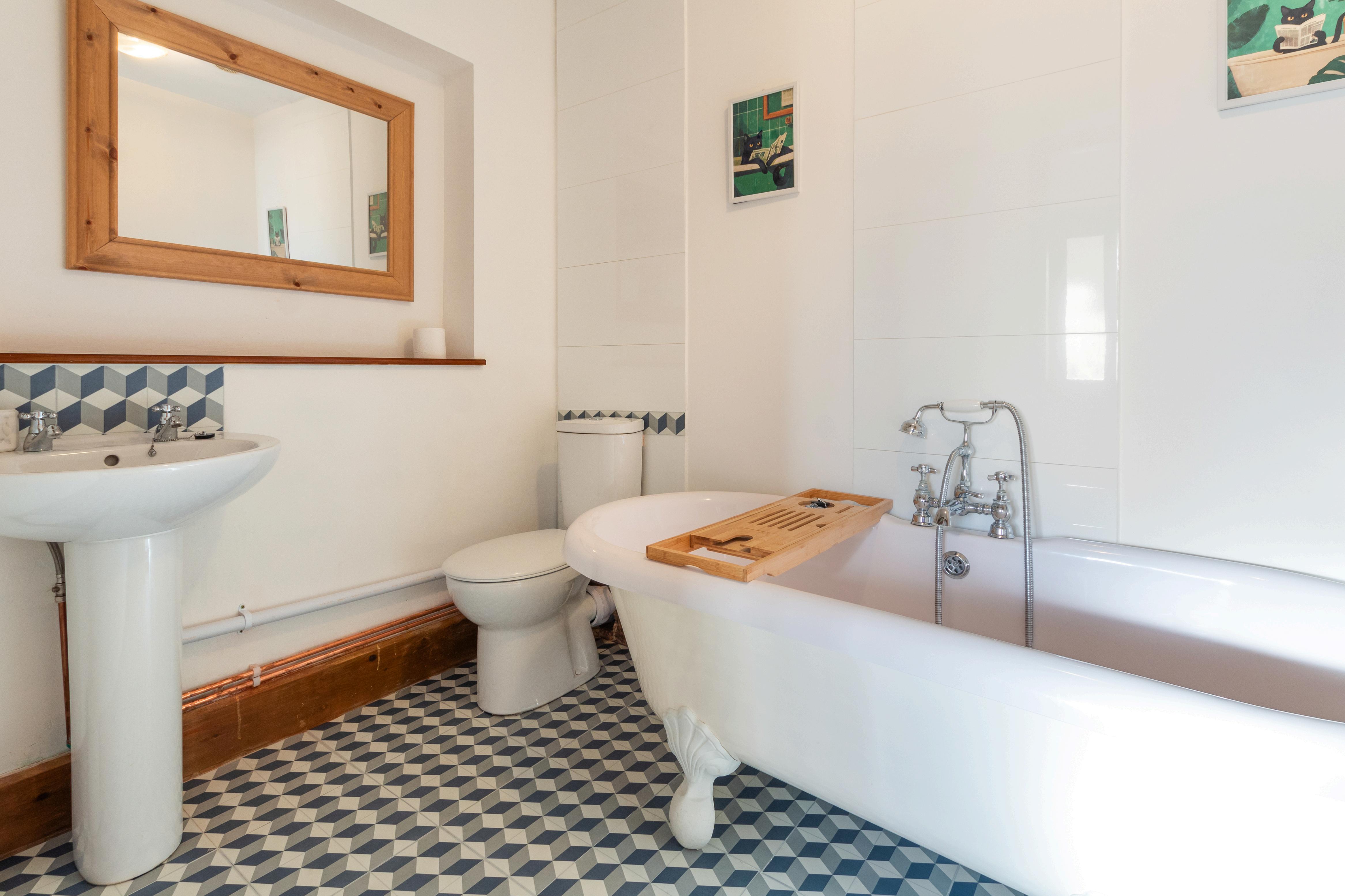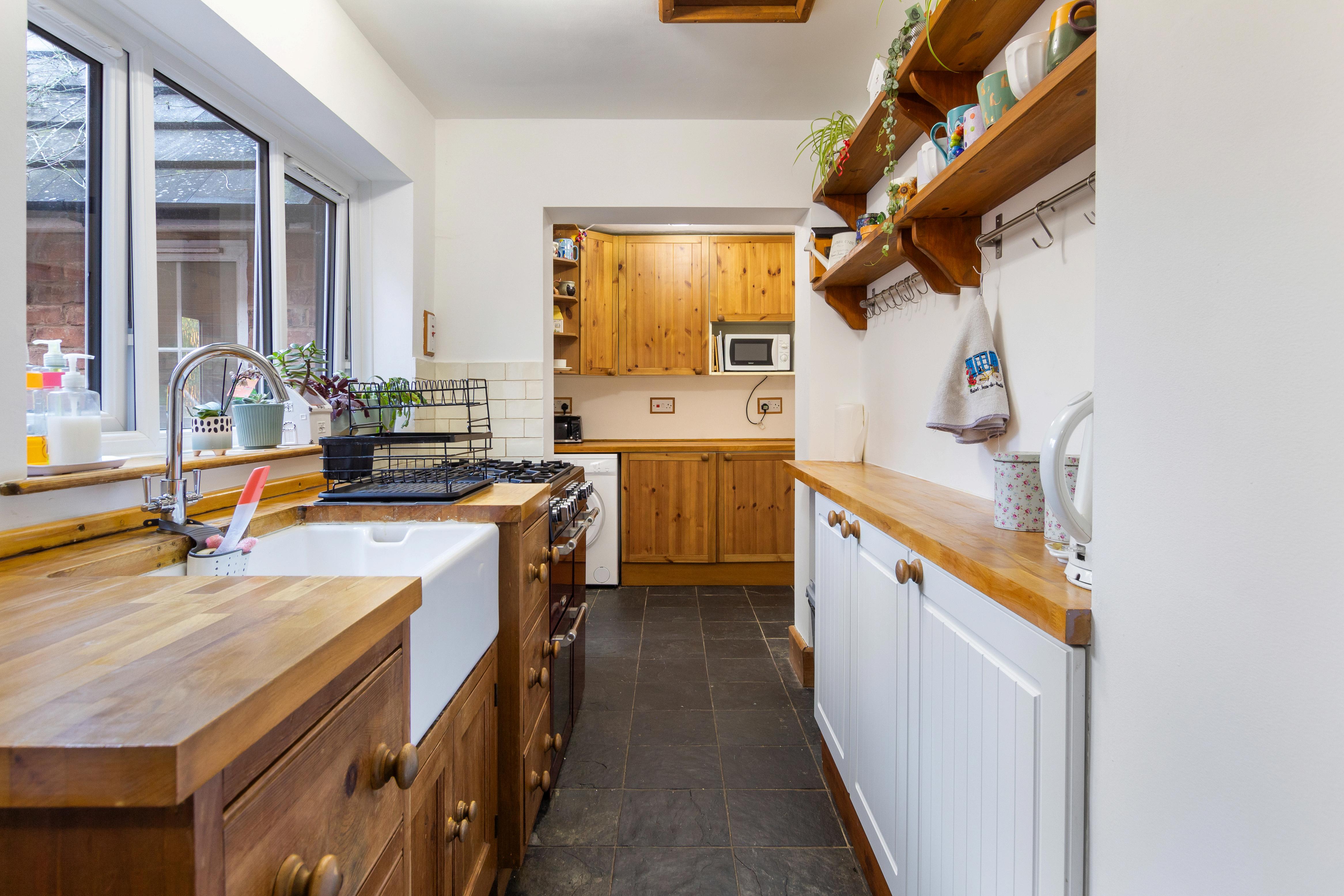 The exterior of the property is just as enchanting as the interior. To the rear, the picturesque garden offers a private haven, bordered by mature shrubs and trees that create a natural sense of seclusion. Predominantly laid to lawn, the garden is complemented by a patio seating area, perfect for alfresco dining and relaxation. A charming garden cabin, complete with electricity, adds further versatility, serving as a home office, studio, or retreat.