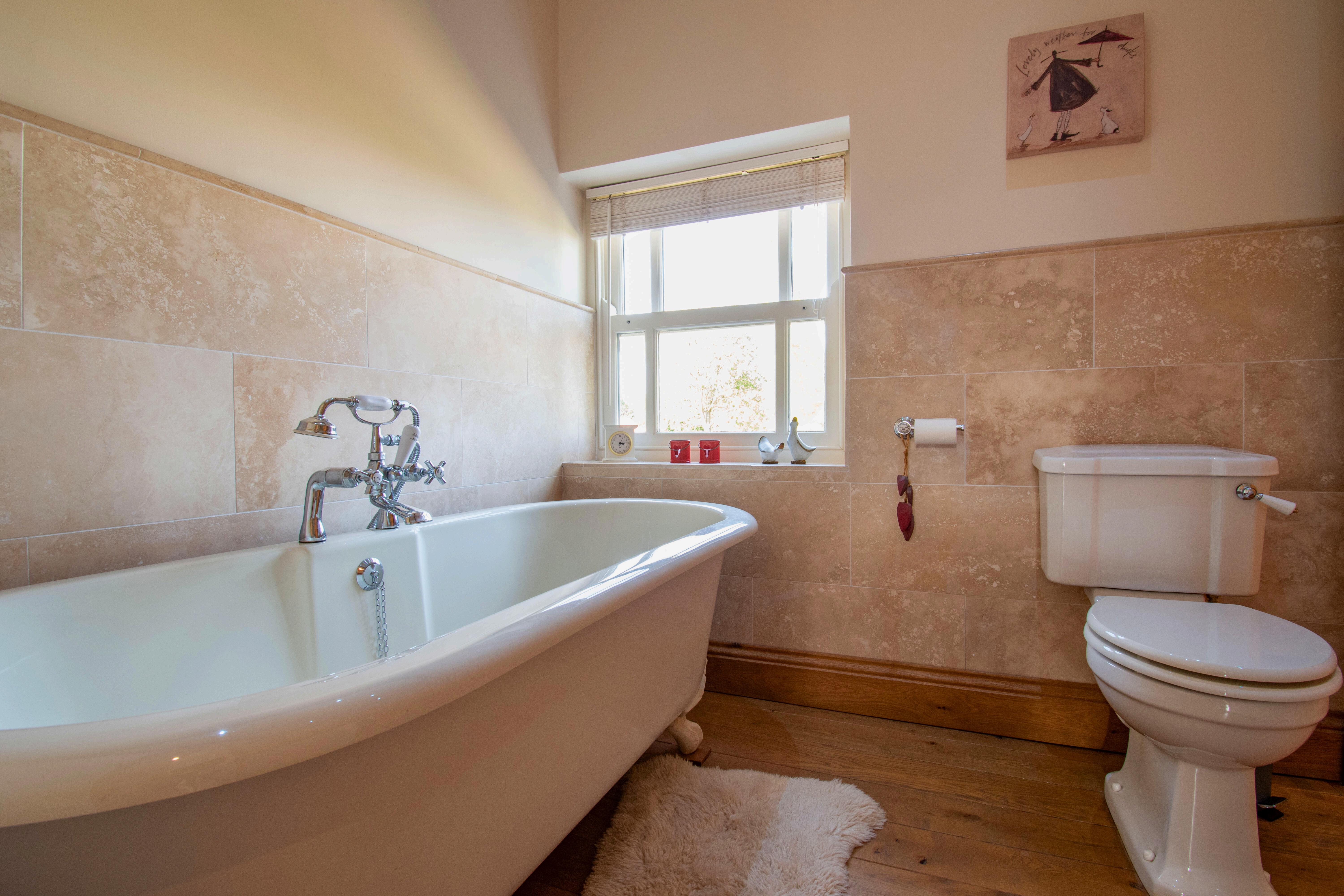 A galleried landing with twin windows allows natural light to enter the space beautifully. The landing leads to three exceptional double bedrooms and two bathrooms. The family bathroom boasts a traditional five-piece suite, including a freestanding roll-top ceramic bath with ball and claw feet, alongside a shower cubicle.