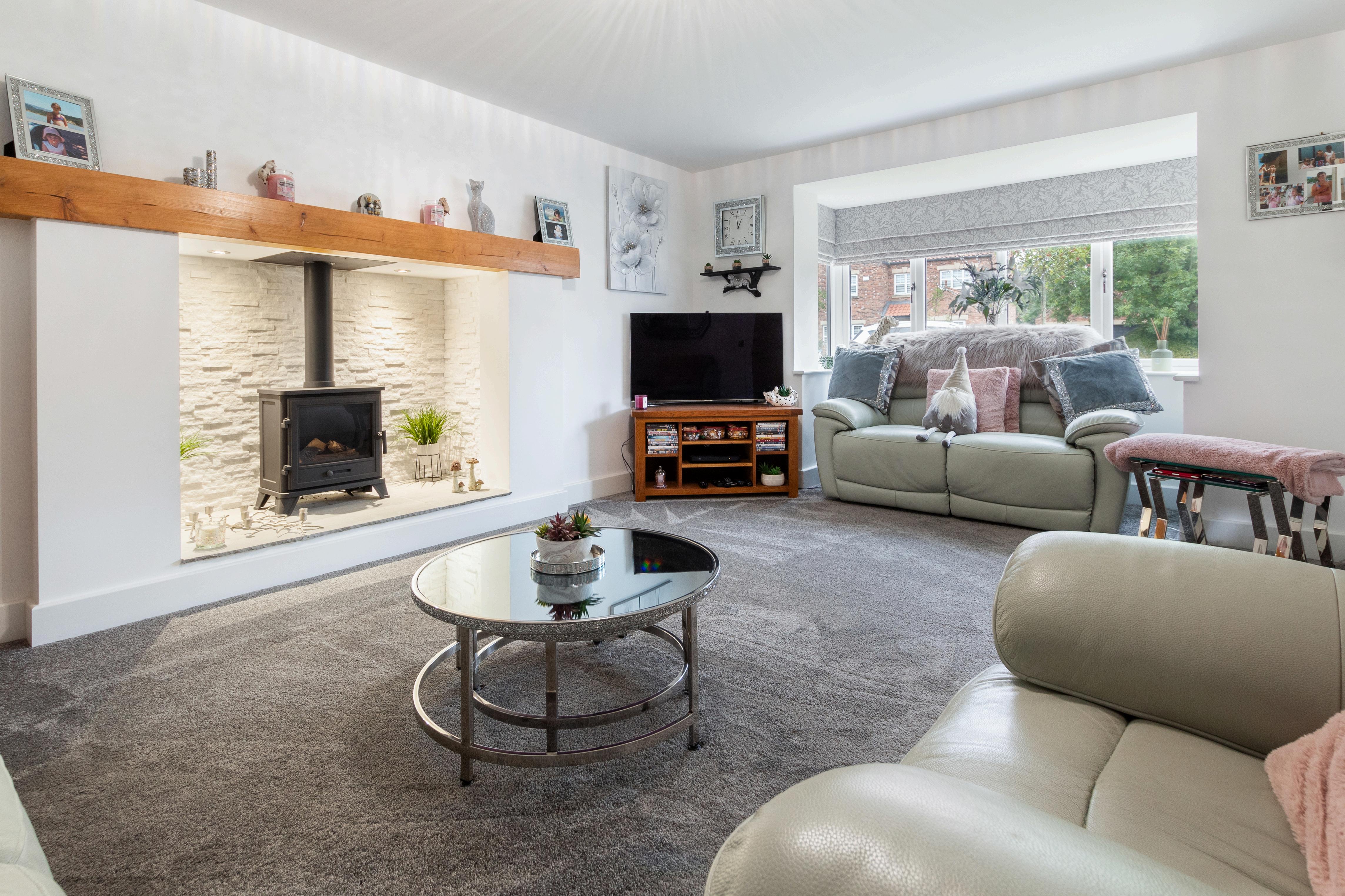 Entering through the wide, welcoming hallway, you are greeted by a sense of space and light To the left, internal access to the integrated garage provides convenience, while on the right, the spacious lounge features a striking square bay window and a stylish feature fireplace, creating a cosy atmosphere for family gatherings