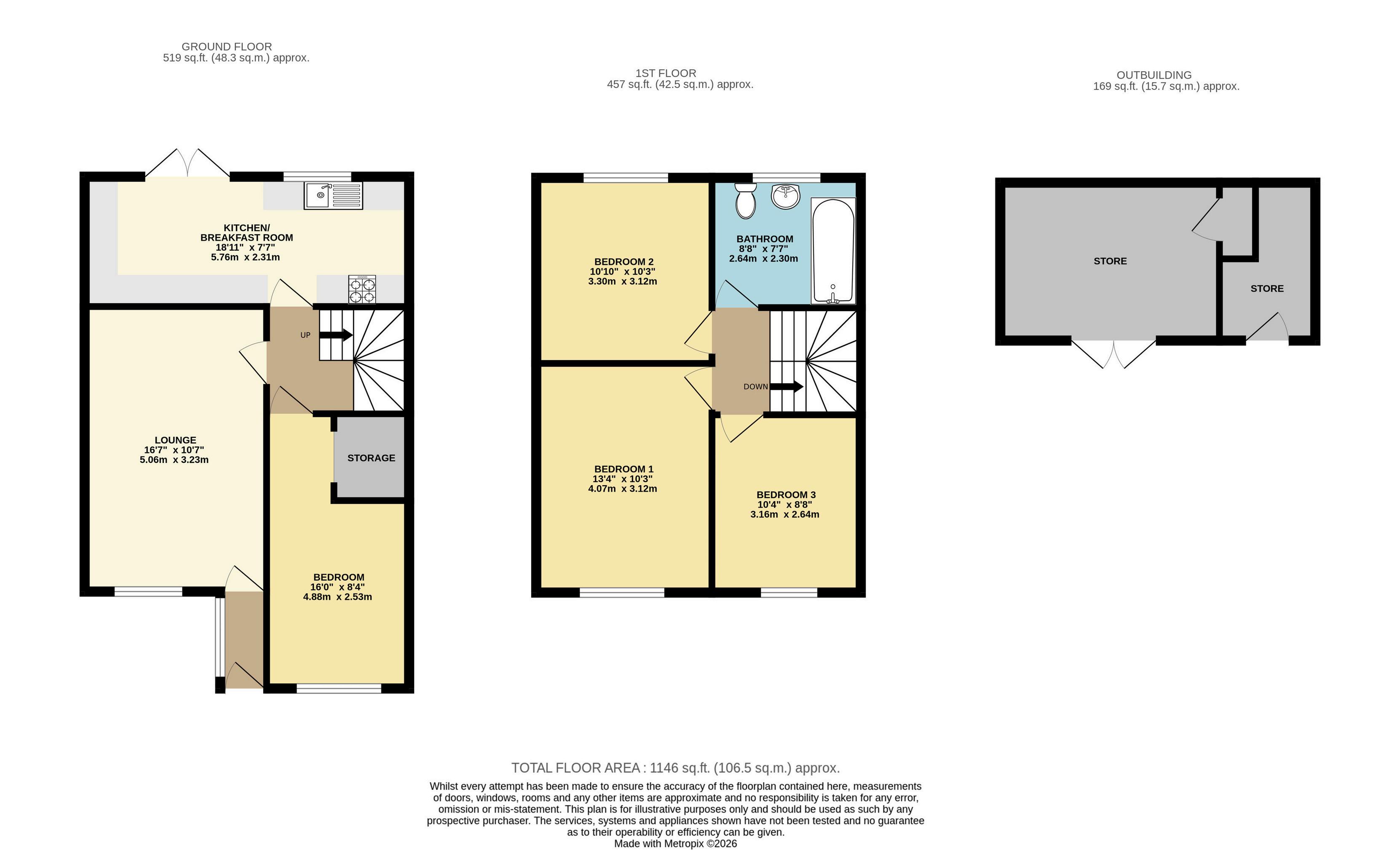 Upstairs, the bedrooms are well proportioned and naturally light. The principal bedroom offers a calm and comfortable setting, while the additional bedrooms are suitable for family members, guests or those working from home. A contemporary family bathroom completes the first-floor accommodation.