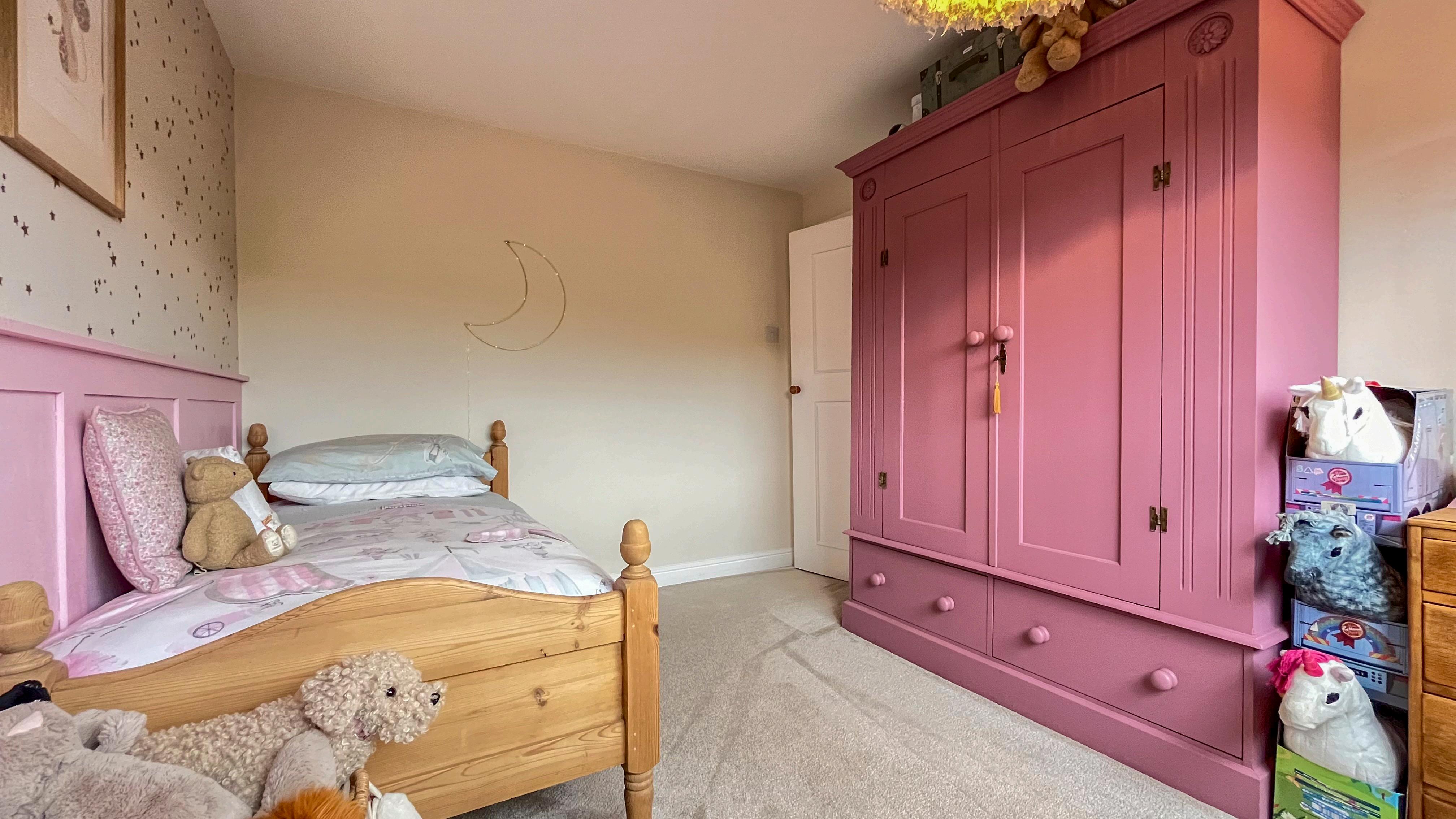 Upstairs, the property boasts three generously sized bedrooms, each offering a tranquil retreat at the end of the day. The master bedroom is a standout, featuring modern fitted wardrobes that provide ample storage space, blending functionality with contemporary style.