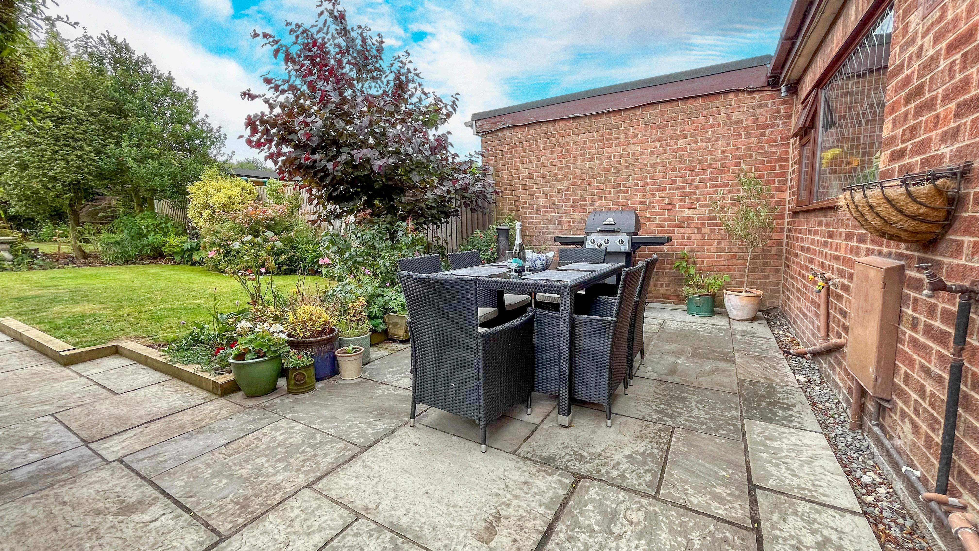 Outside, the property continues to impress with a front driveway offering double gate access, providing space for multiple vehicles. The single garage, complete with an electric roller door, adds further convenience. The front garden is beautifully maintained with planted borders, while the rear garden features a lush lawn, a paved patio area, and a timber garden shed. The open field views beyond the garden provide a stunning backdrop for outdoor living and entertaining.