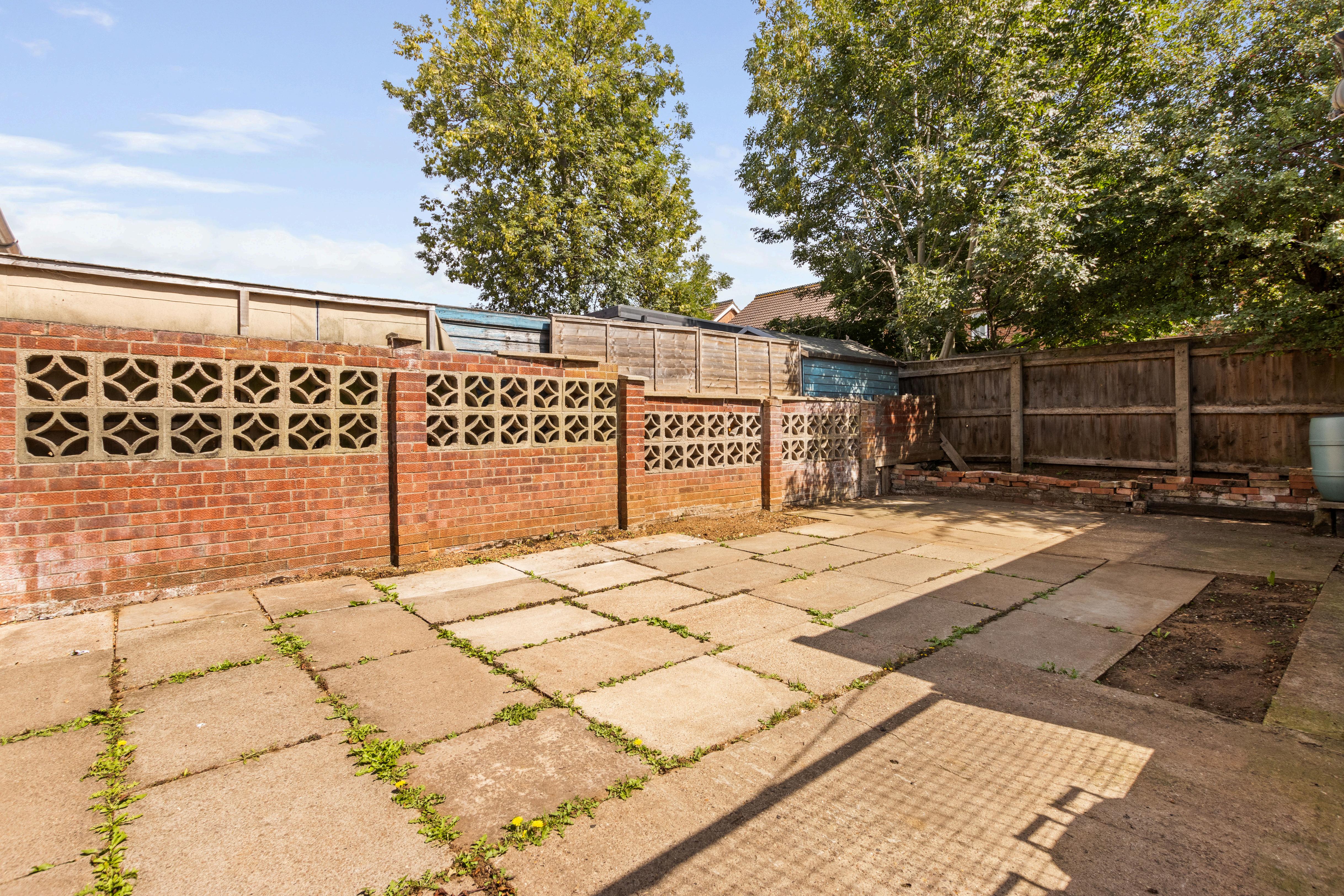 To the front, an extensive driveway provides parking for multiple vehicles and leads to a garage, offering excellent storage or workshop potential. The rear garden has been designed for low maintenance, providing a private outdoor space to enjoy without the need for constant upkeep.