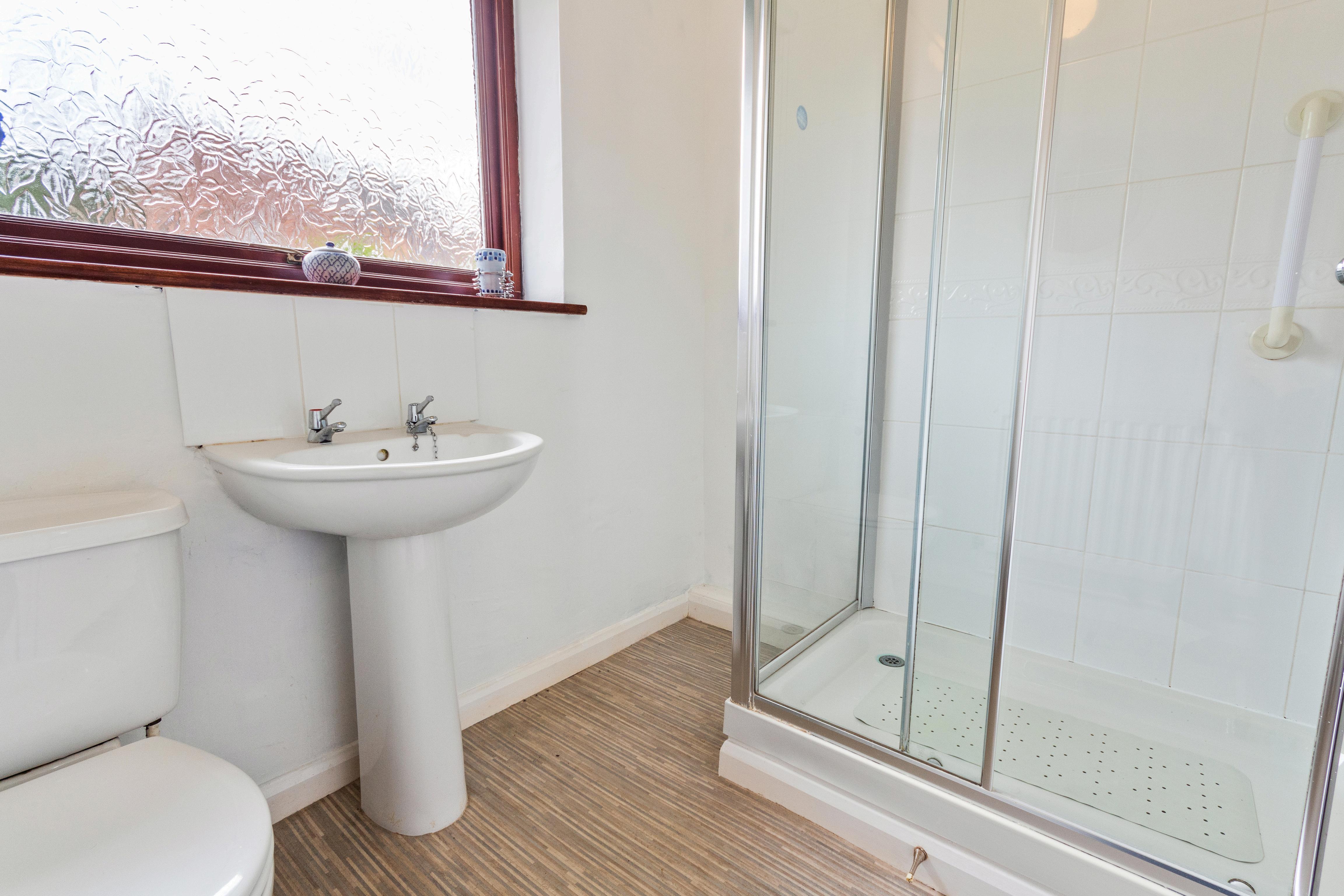Step inside the welcoming front entrance hallway, which leads you to the traditional fitted kitchen diner featuring a side entrance door for easy access. The spacious lounge boasts a feature fireplace, patio doors that flood the room with natural sunlight, and an electric sunshade awning for added comfort. The bungalow offers three generously sized bedrooms, one with fitted wardrobes, and a modern family shower room equipped with a walk-in shower enclosure, wash hand basin, and W.C.