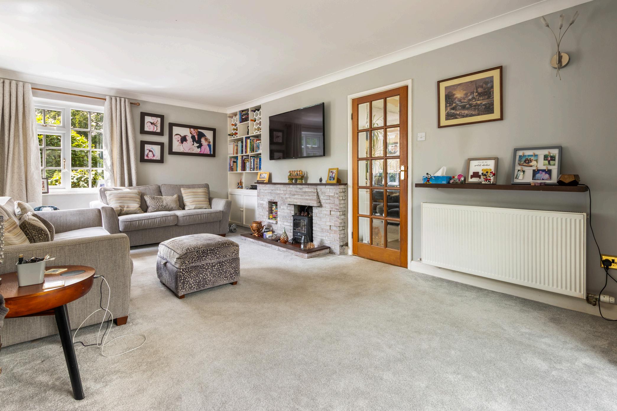 The generously sized lounge enjoys a bright double-aspect outlook with French doors to the conservatory, a feature fireplace and built-in storage to the alcove. The spacious conservatory, with French doors to the garden, creates a seamless indoor-outdoor living space, ideal for relaxation or entertaining. The kitchen is fitted with a range of cream shaker style wall and base units complemented by tiled splashbacks and a ceramic sink. There is an integrated electric oven and grill, gas hob with extractor over, and space for appliances. A pantry cupboard provides extra storage, while a side porch offers additional space for a fridge freezer and leads to both the garden and the downstairs WC.
