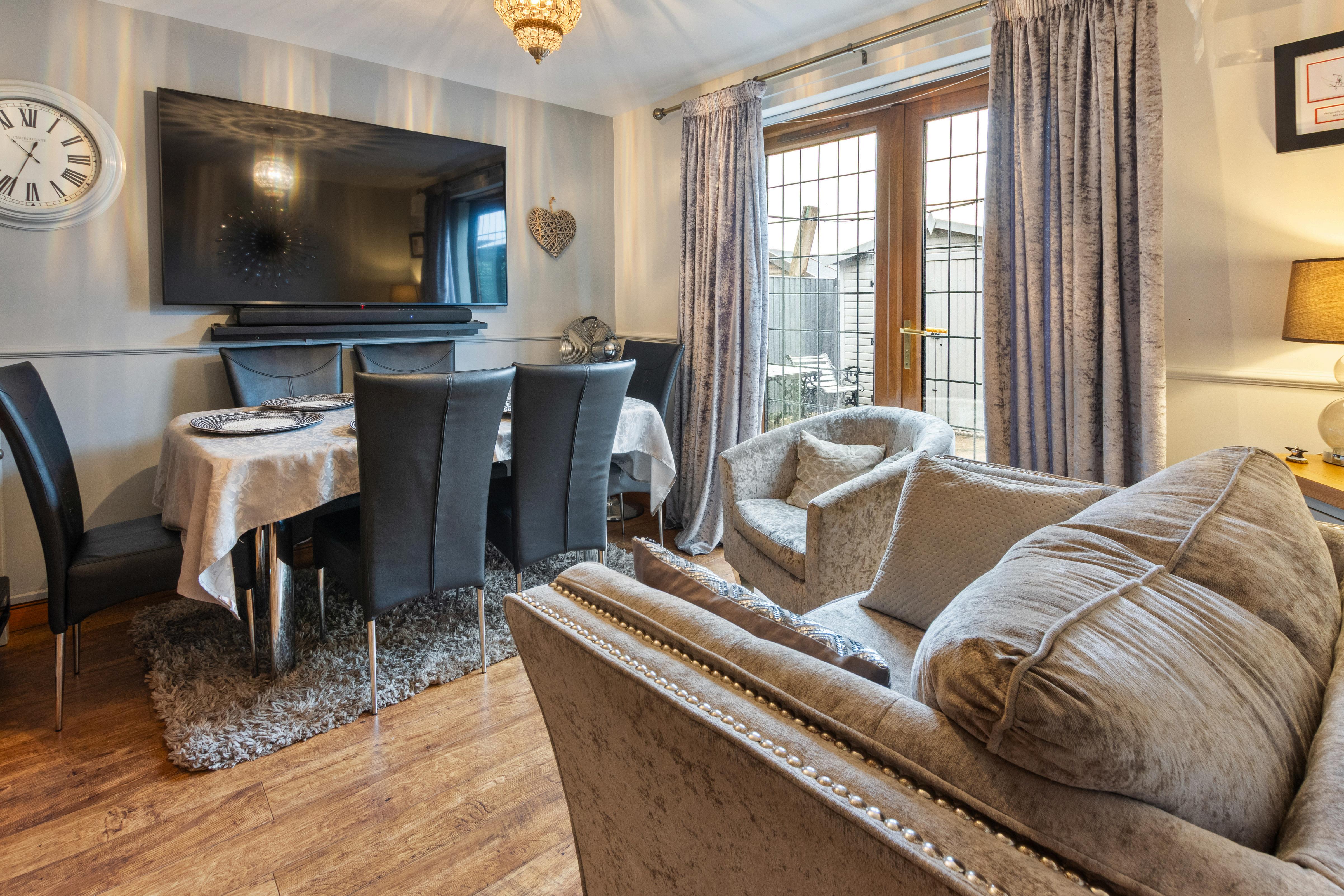 There’s a separate dining room too, perfect for family meals, entertaining, or even a dedicated playroom or home office. This space enjoys a lovely connection to the garden via French doors, giving you that easy indoor-outdoor flow in the warmer months.