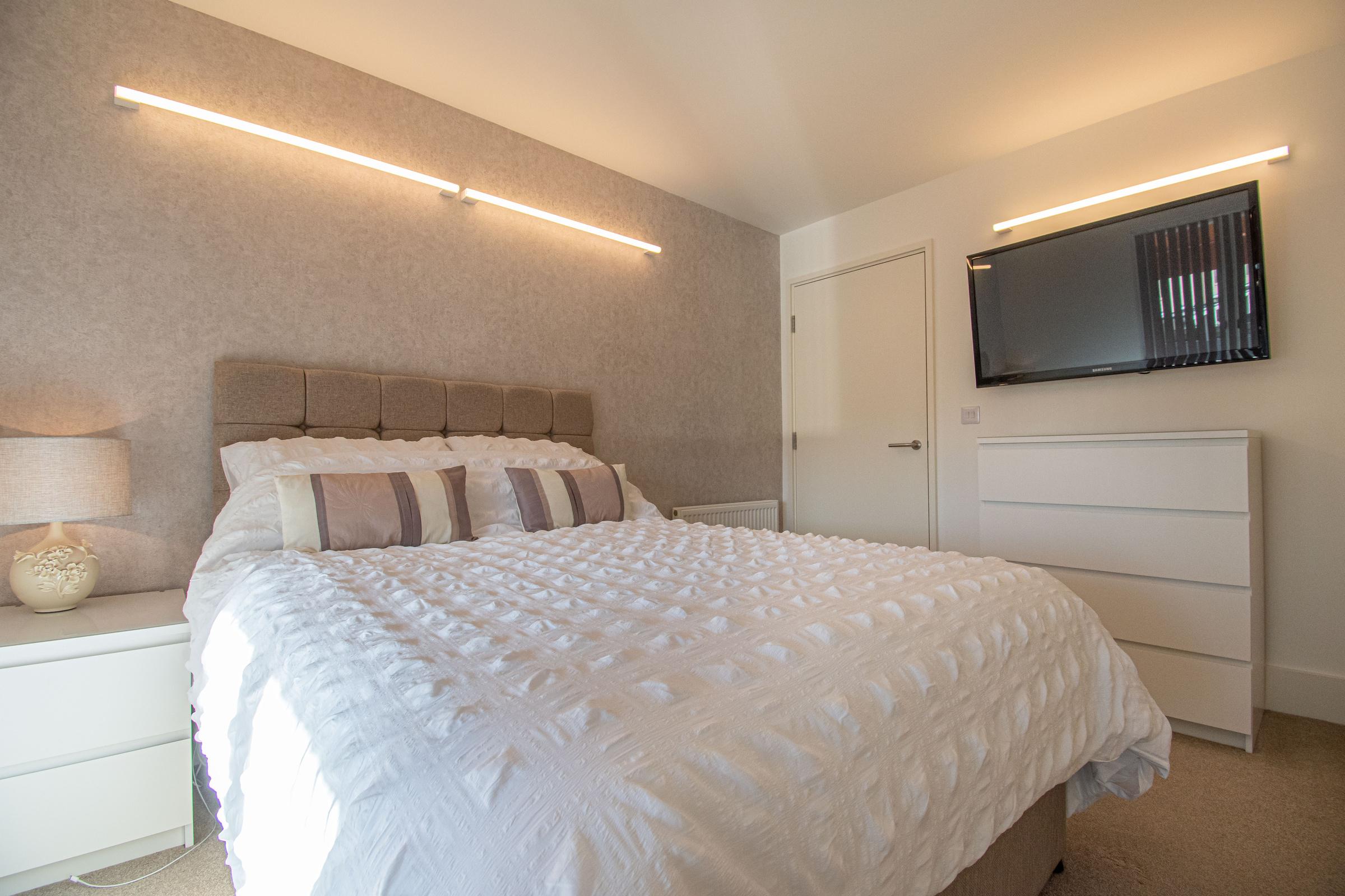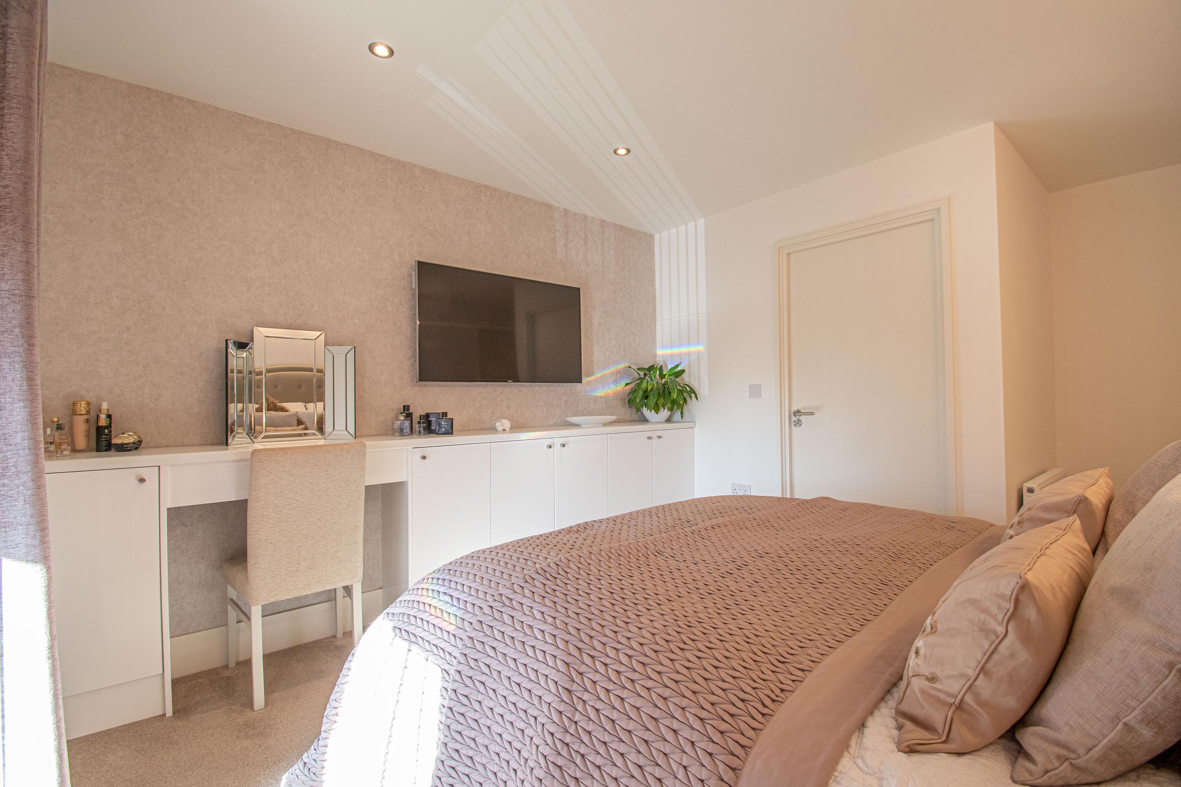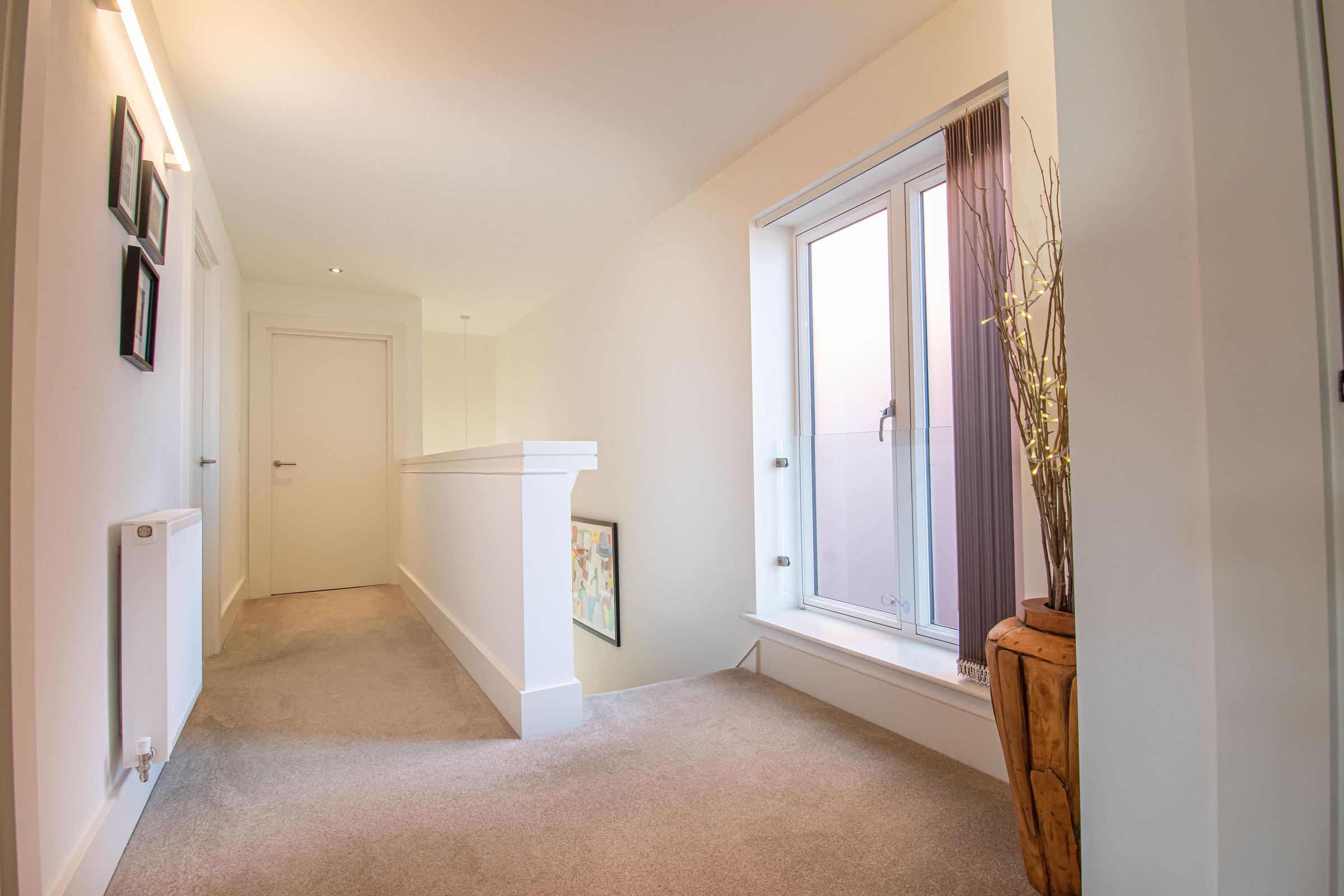 The contemporary design continues to the landing which has an airing cupboard and provides access to four double bedrooms all with glazed balustrades providing a Juliette style window looking over the rear garden. The master bedroom benefits from an en-suite shower room, and the owners are using one of the bedrooms to provide a dedicated dressing room to suit their needs.Amodernfamilybathroomhasathree piecesuitewithanoverbathshowerwithscreen.