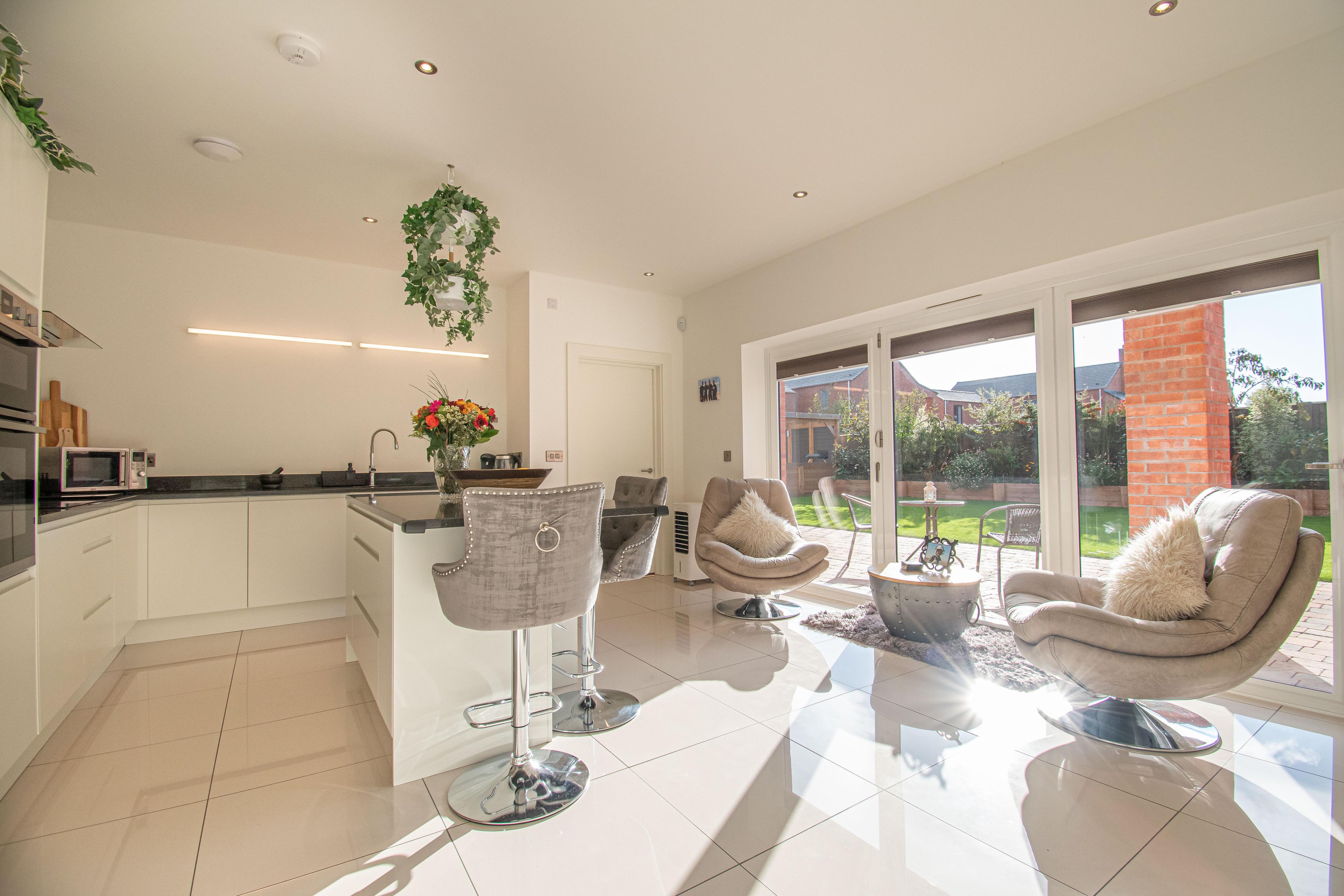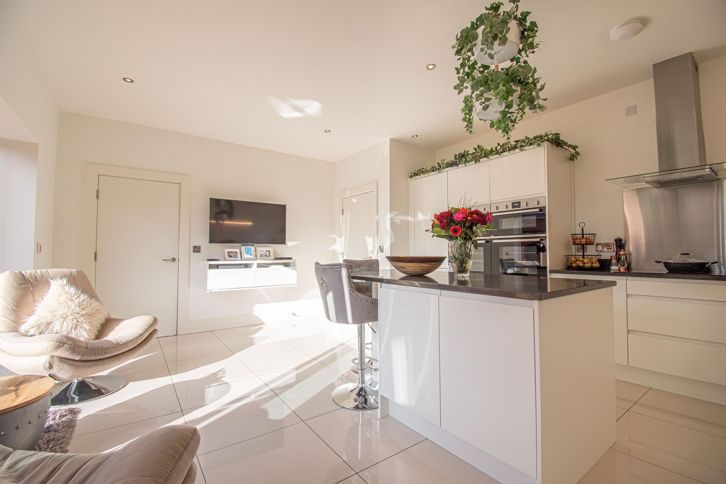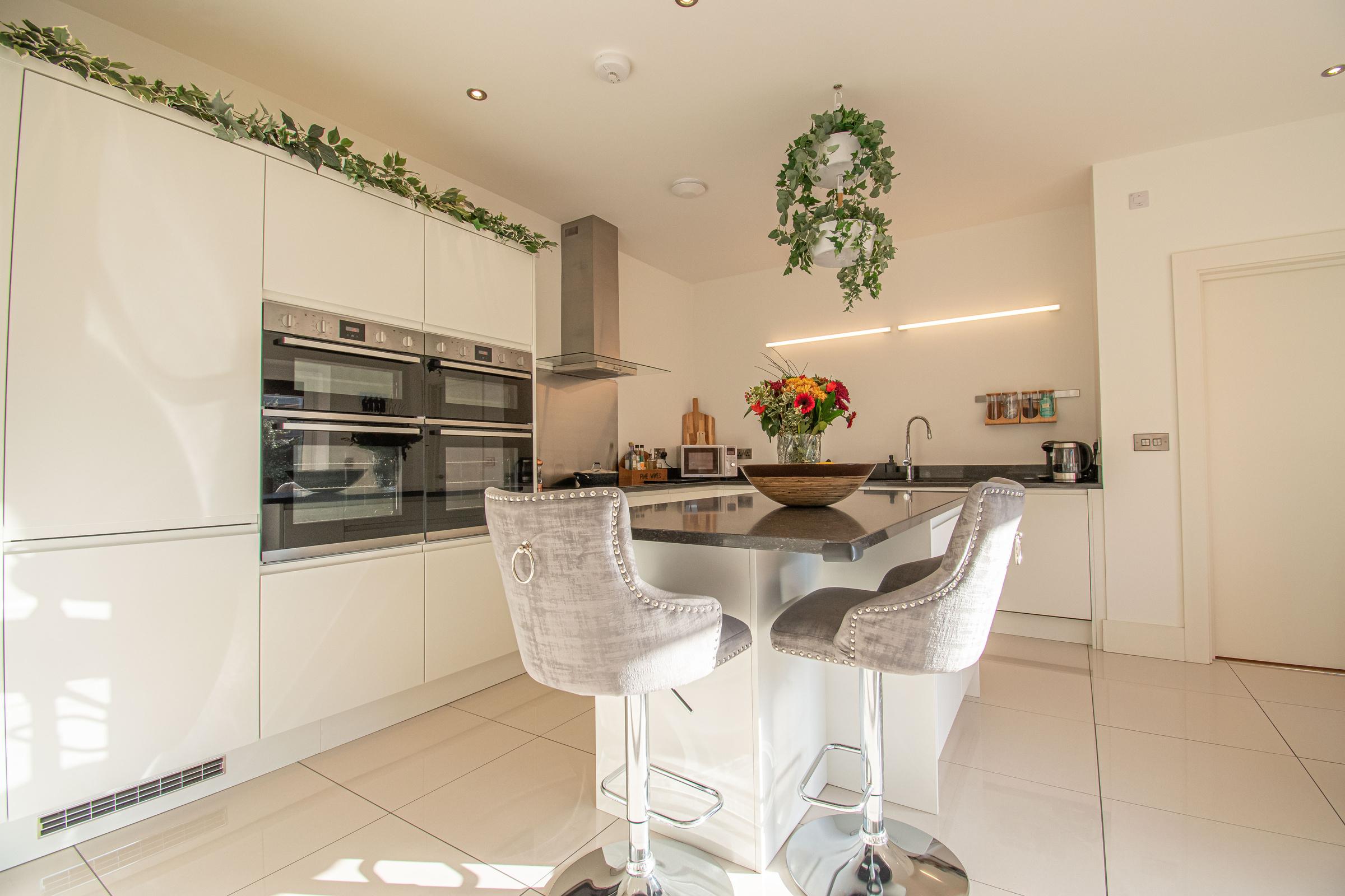 Thekitchenisfittedinarangeofseamlesswhitecabinetswithcontrastingblackgraniteworking surfaces which include a range of integrated appliances with a matching centre Island with breakfastbar.Thekitchenisopenplantoalivingareawithbi-foldingdoorsallowingfornatural lighttofilltheroomaswellasacreatingaseamlessflowtothegarden.Apracticalutilityisfitted tomatchthekitchenwithdoortothesideaspect.