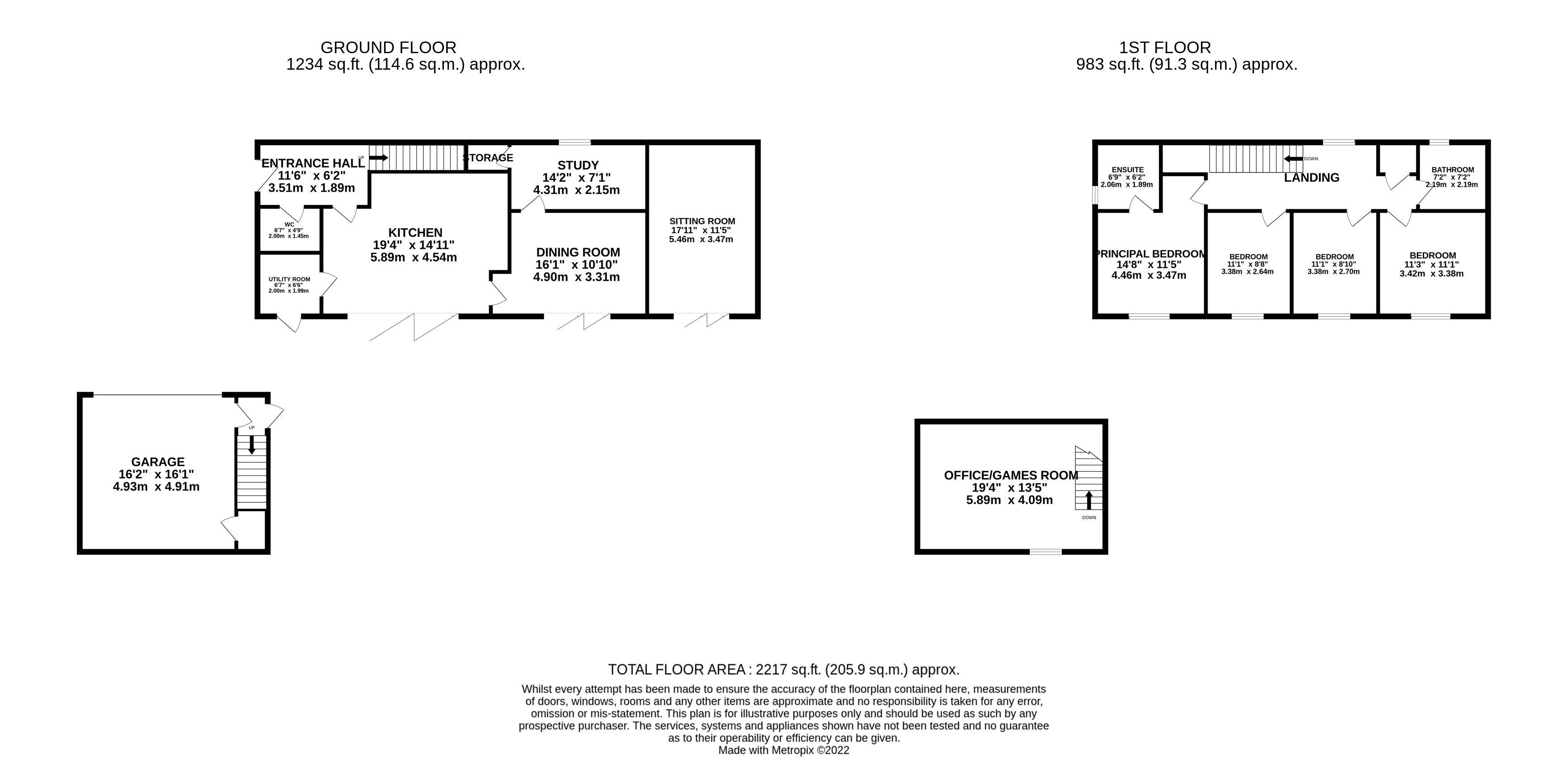 To the front of property is a canopied entrance door with path which is flanked by lawned garden with planted borders. A path also leads to the ample block paved parking area which also serves the detached garage with electrically operated up and over door with a personnel door to a lobby and a second personnel door to the garden. The lobby has a staircase to the first floor studio which has a window, electric wall heaters, power and light this versatile space could be used as a dedicated home office away from the main house, teenage retreat, or a gym.