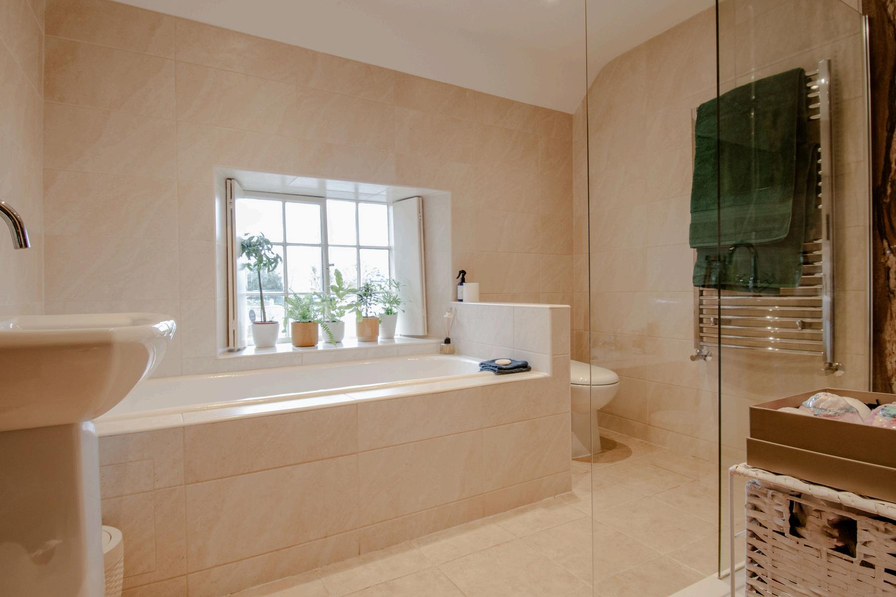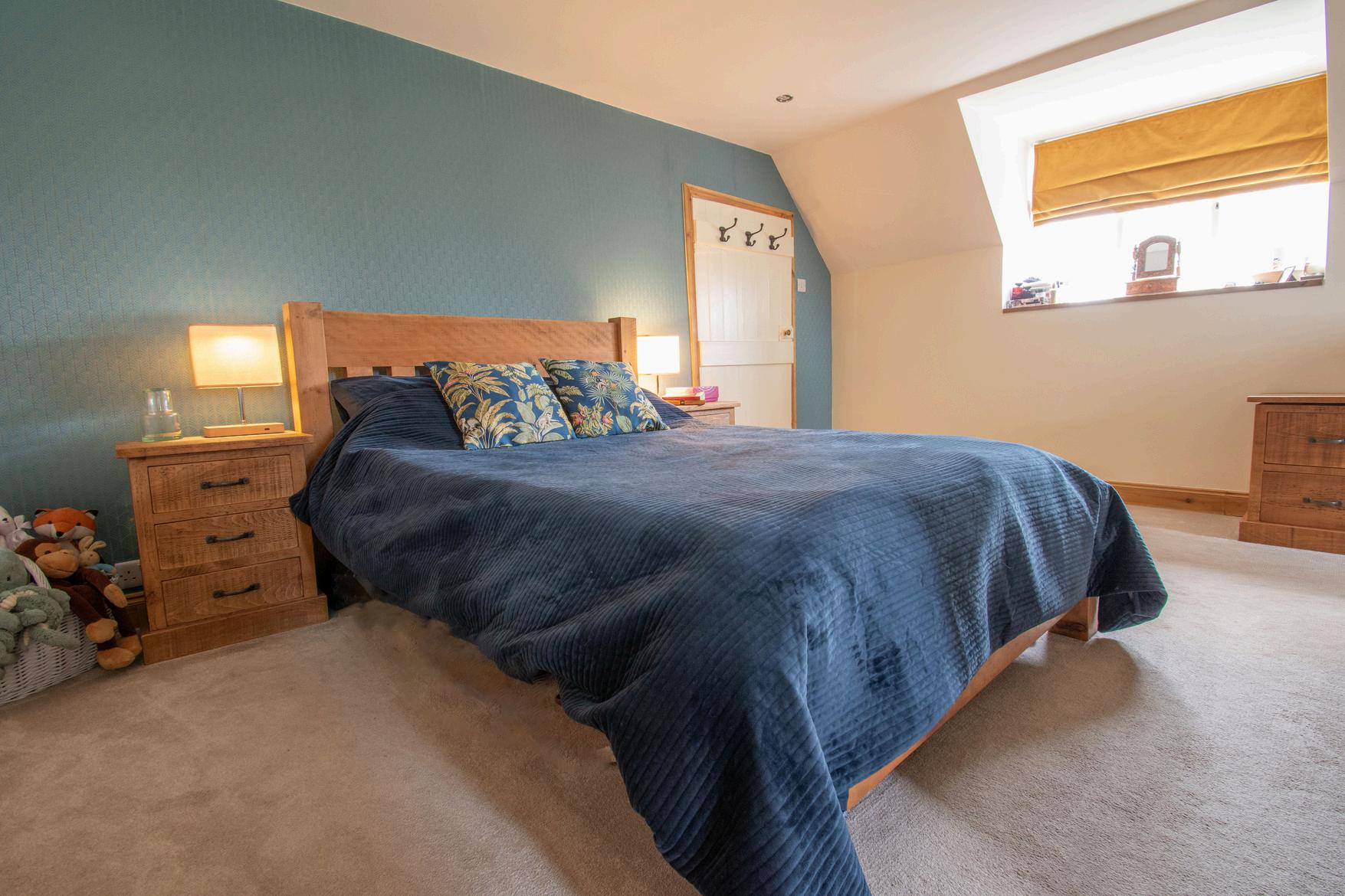 The landing leads to the third bedroom which has a feature quirky spindled staircase and has been left in situ as a nod to the past, where it is t seasonal farmworkers used to sleep in the loft. Bedroom three is a spacious double with a decorative wood painted fireplace and built-in ward