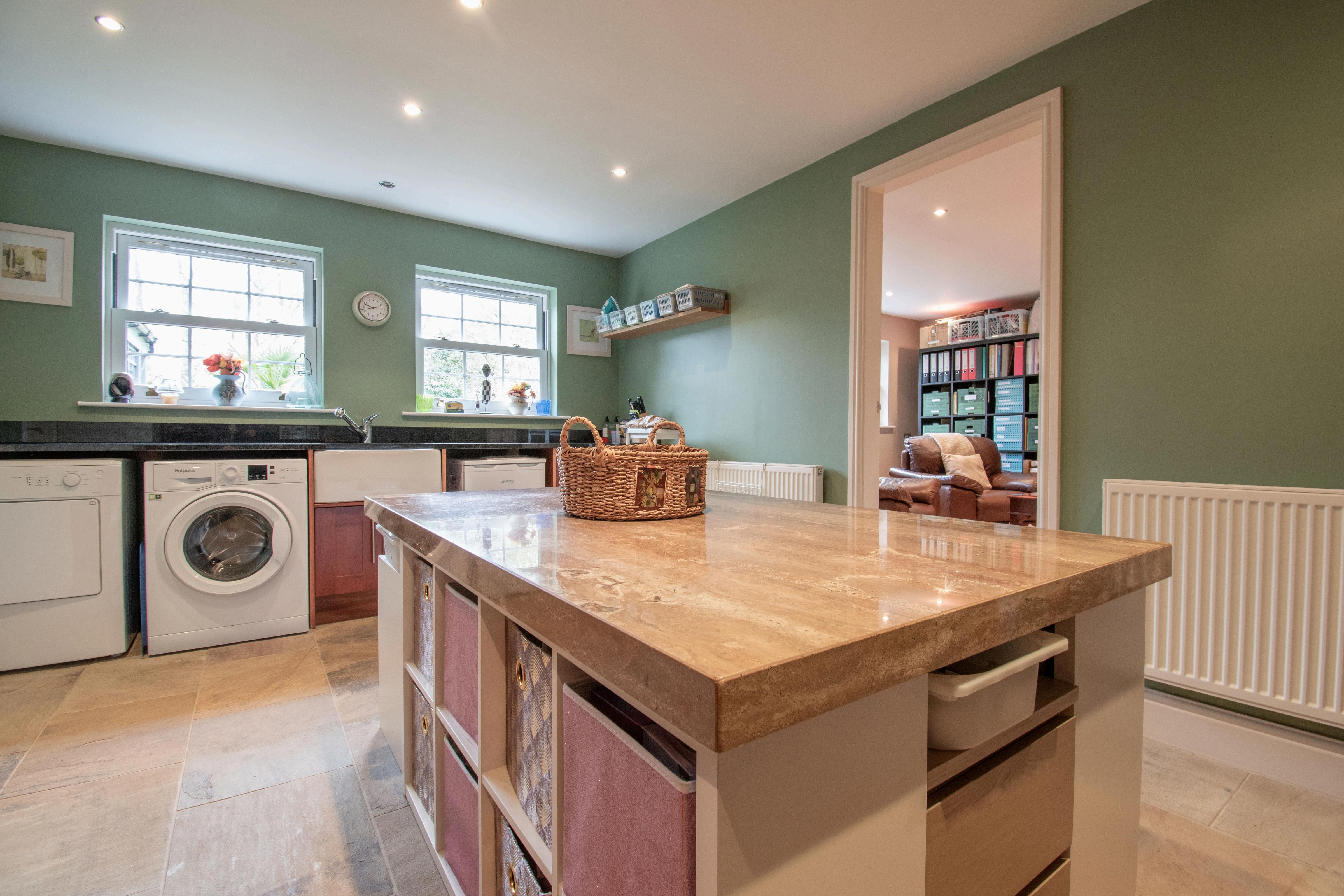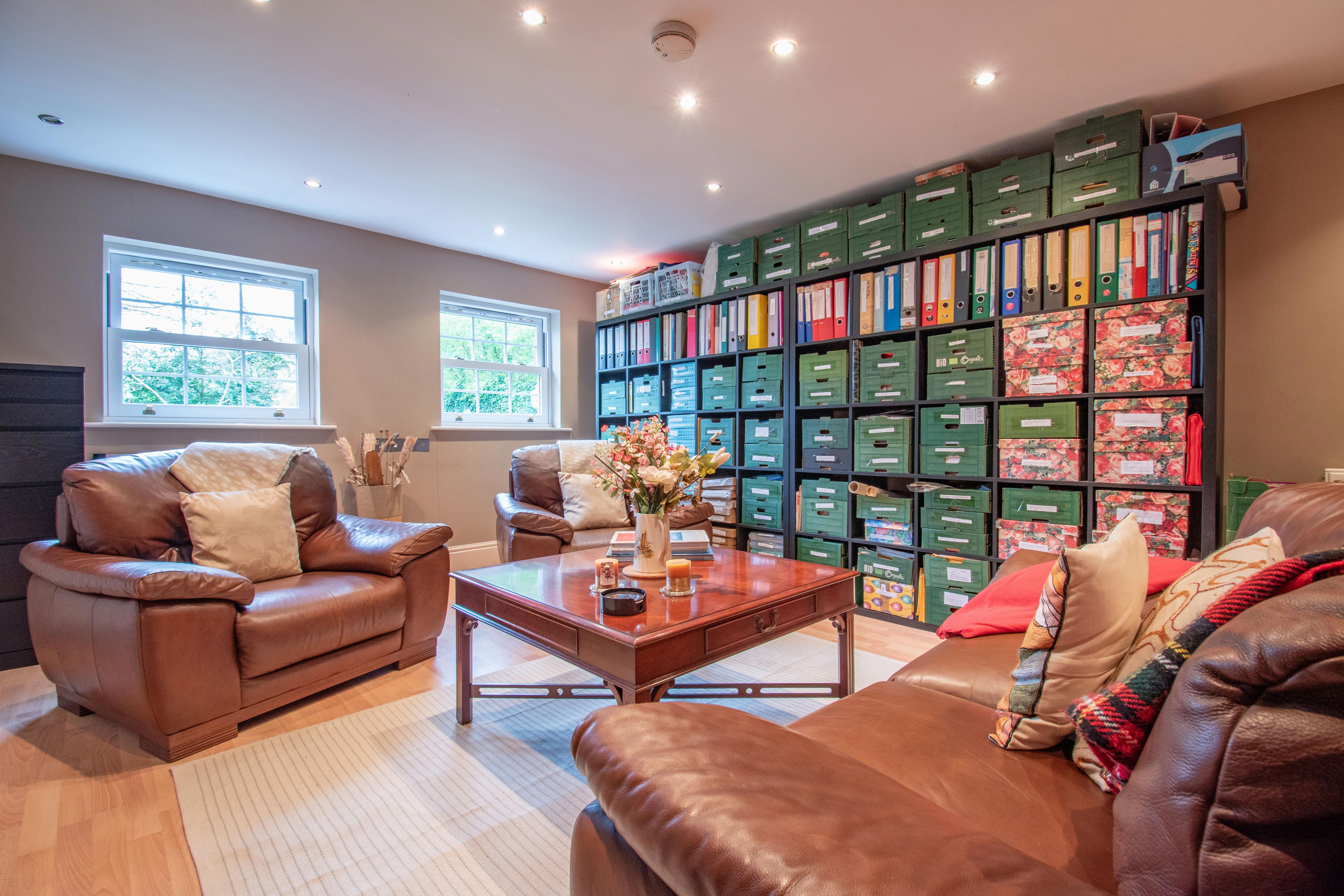 Leading from the downstairs lobby are two large rooms which could be reconfigured to create a self-contained annexe. The large, fitted utility/laundry room could easily convert to kitchen. The second spacious room was previously used as a home gymnasium and currently is used as a library/archive room offering potential to provide a lounge if an annex is required alongside the upstairs bedroom and ensuite. Such an arrangement could also be used to create an Air B&B income subject to any permissions required. t