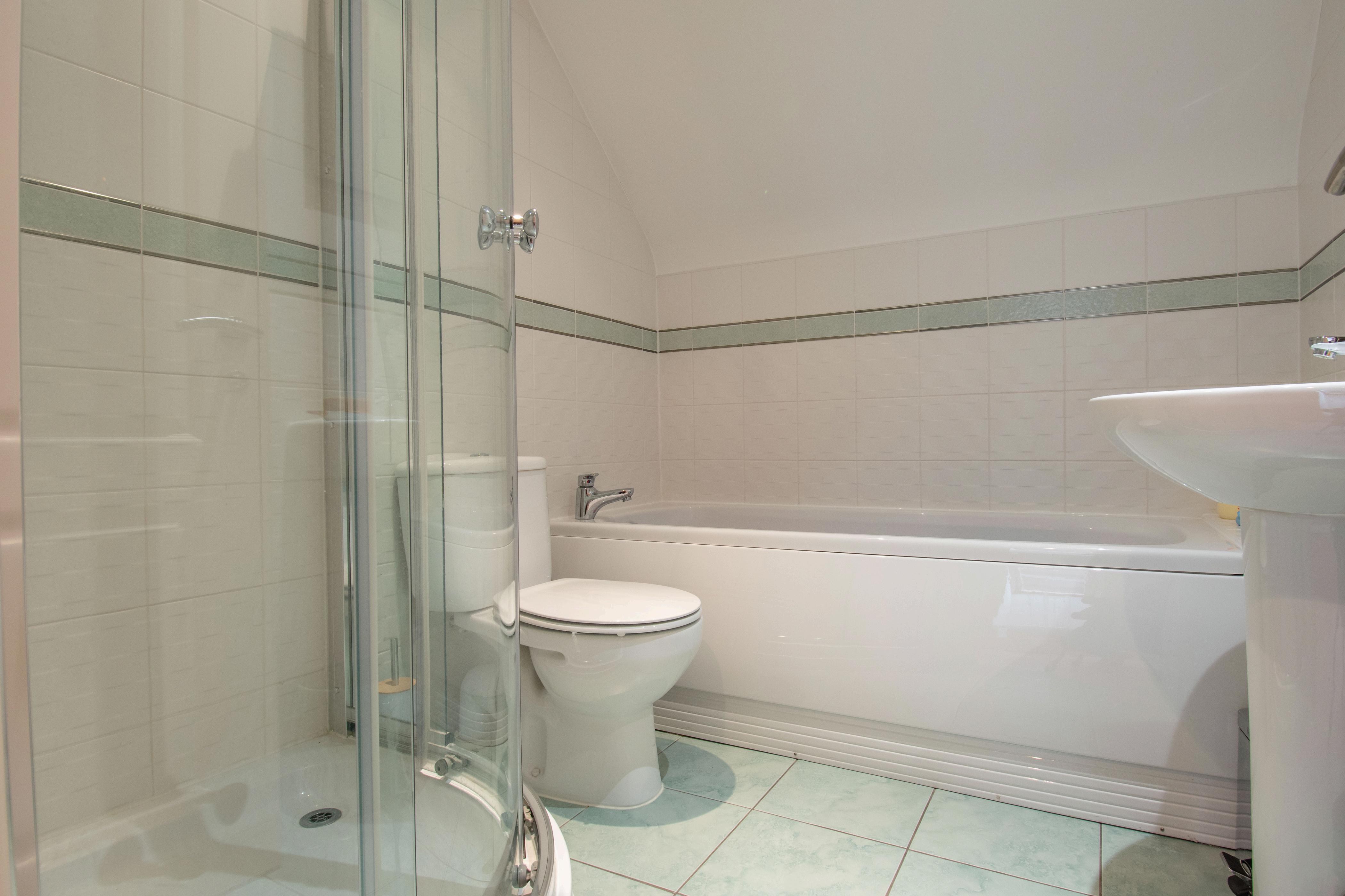 A lobby from the kitchen has a second informal entrance door and another door which opens to the double garage. There is also a glazed door to the rear garden. A step leads to an extended area with cloakroom fitted with a modern two-piece suite and a staircase with Fusion balustrade which leads to the first-floor landing. This landing has a door to a spacious double bedroom with a storage area, and an ensuite fitted with four-piece suite.