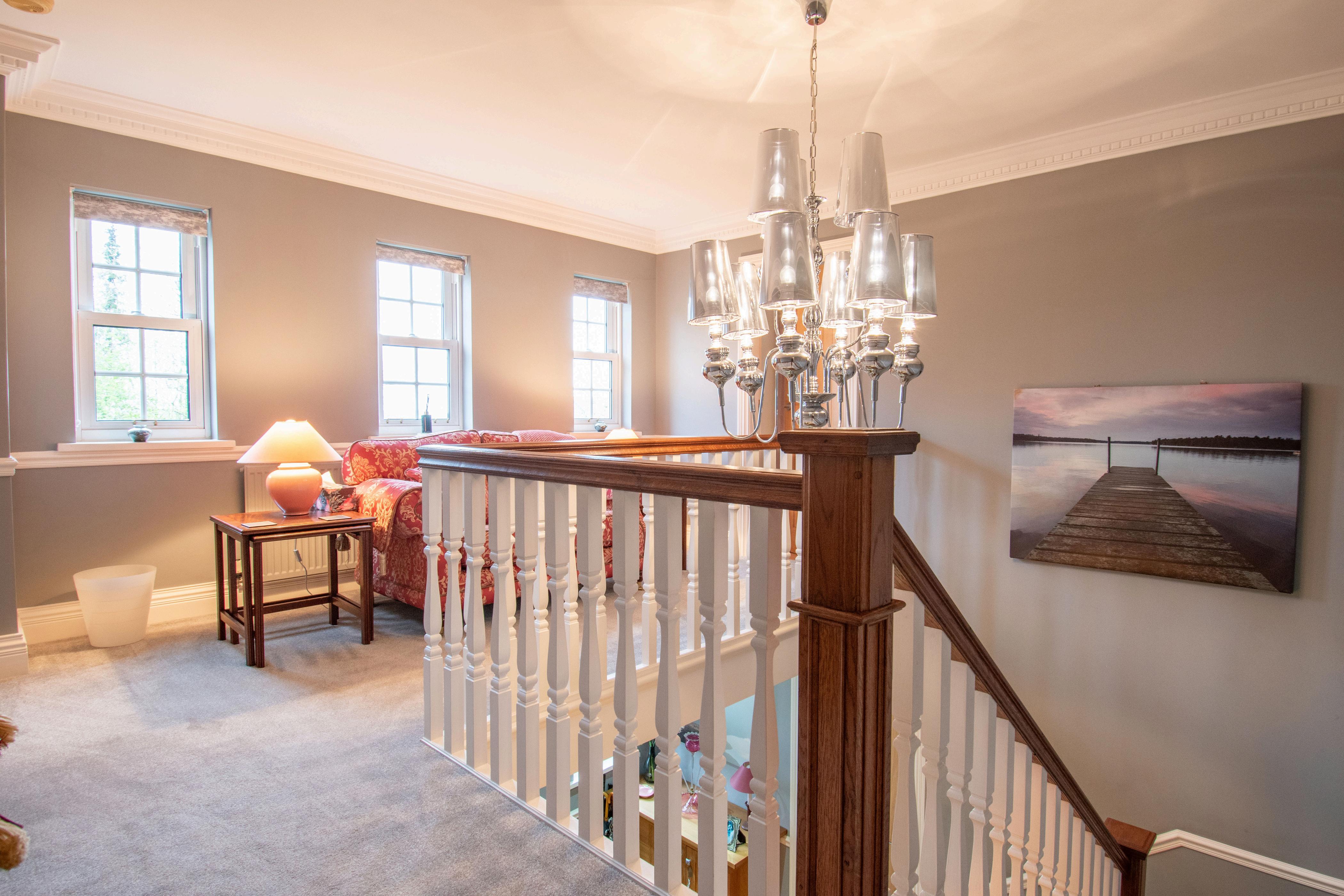 The main staircase in the reception hall leads to a galleried landing to four double bedrooms. The expansive forward-facing principal suite which currently houses a Super King size bedroom suite includes a fitted dressing room which accesses the modern en-suite with luxurious contemporary fitments including a walk-in shower cabinet with digital shower. Two of the three further bedrooms have en-suites shower rooms, one of which has a Jack and Jill arrangement to the landing to serve the generous fourth bedroom, currently being used as a fitted dressing room.
