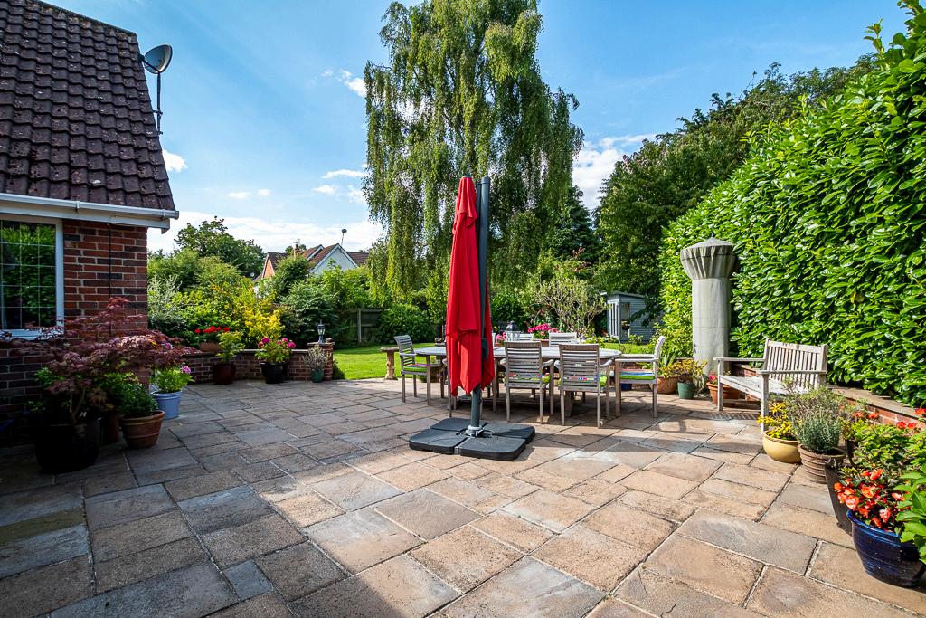 As you come up the drive where you can get multiple cars parked, and walk past the garage, the garden opens into a generous size. The back door from the utility takes you straight out onto a large patio area which is great for alfresco dining and entertaining. At the back of the garden, you have a summer house and another patio area for more seating options. This beautiful garden has lots of privacy created by the natural surroundings of trees and enclosed fencing.