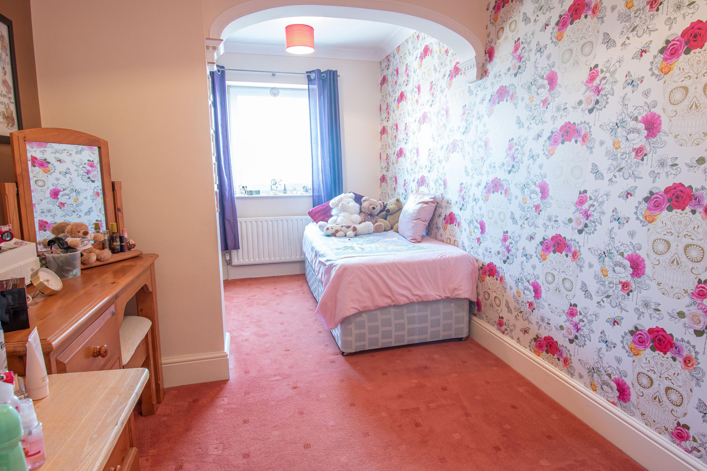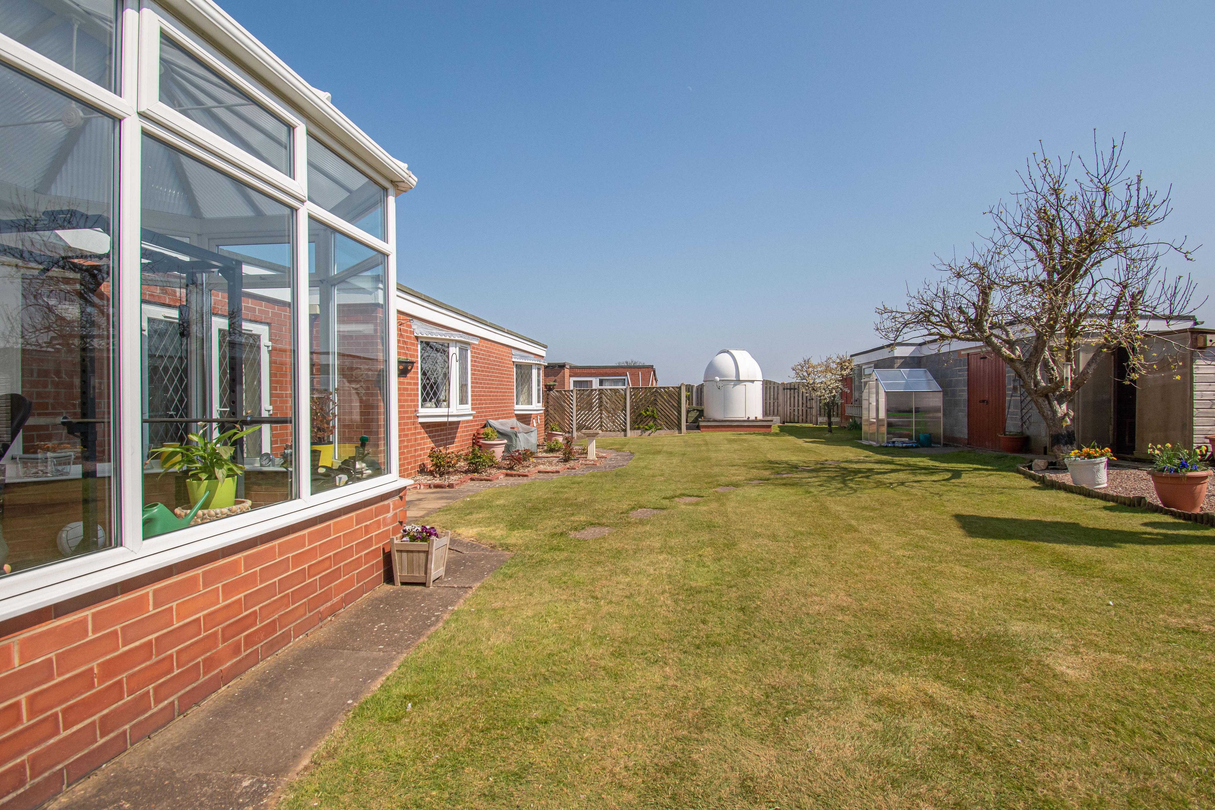 To the rear of the property there is a shaped lawned garden with gravel infilled beds which includes a deep area for garden sheds and green house if required and there is a block-built outbuilding with power and light ideal for a workshop or hobby room. A high fenced boundary encloses the rear to a neighbouring field.