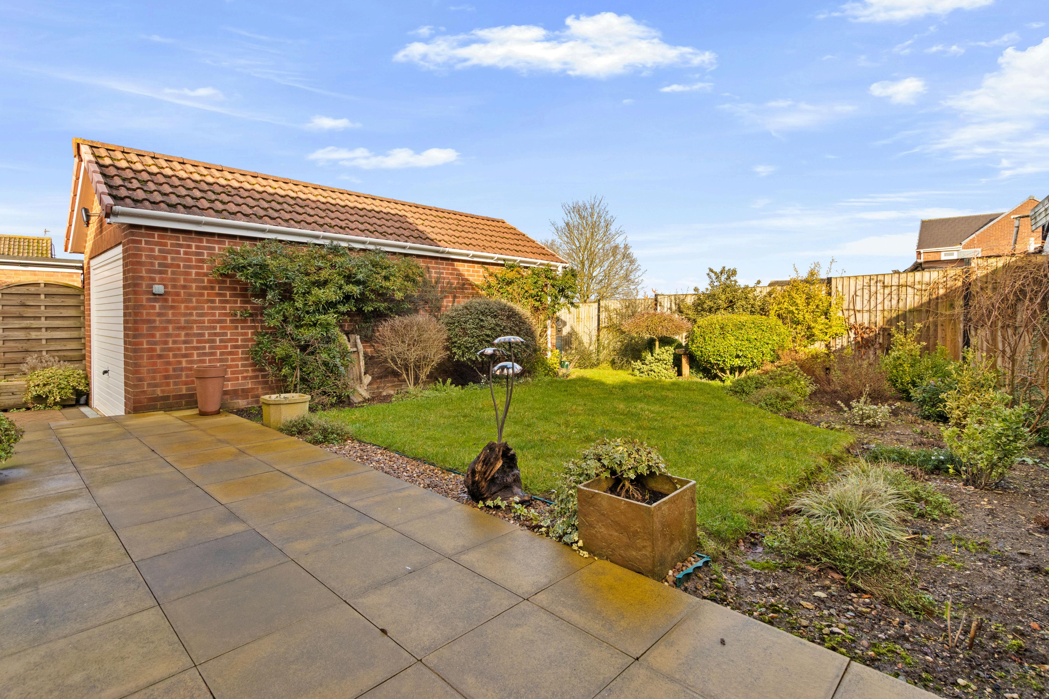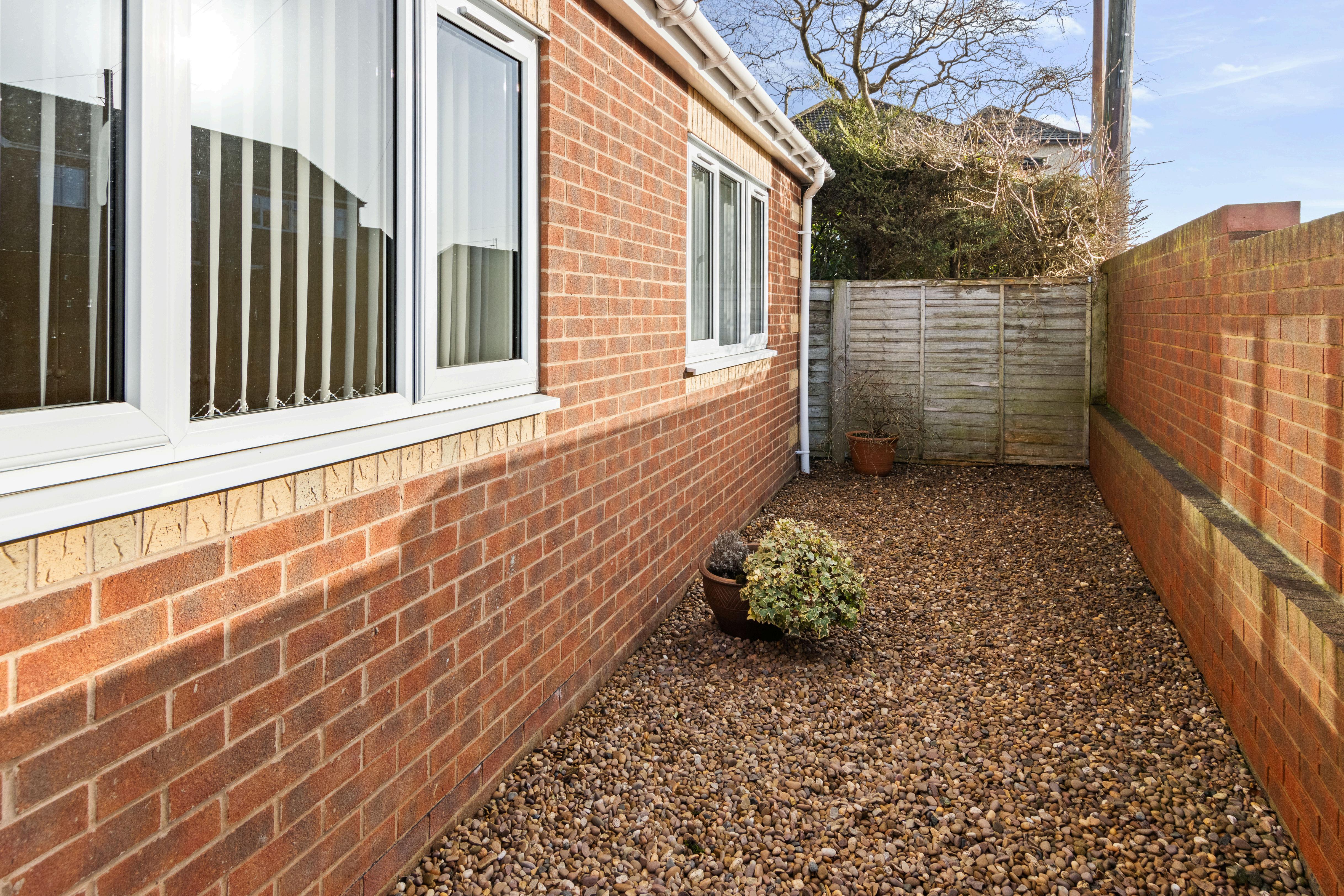 Low maintenance and neatly arranged, the outdoor space complements the bungalow perfectly and enhances its easy-living appeal.
