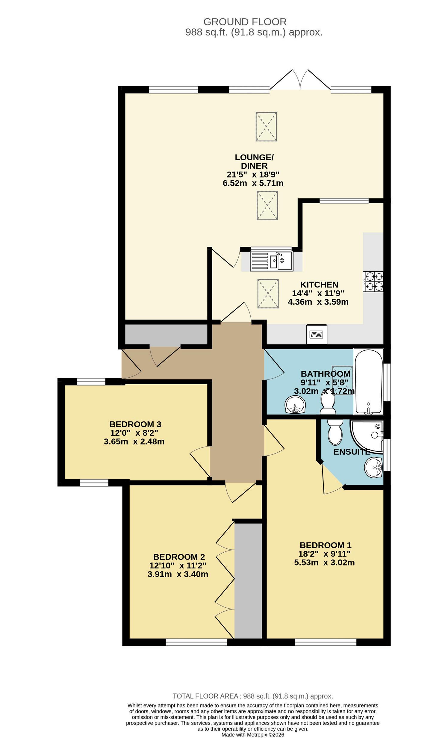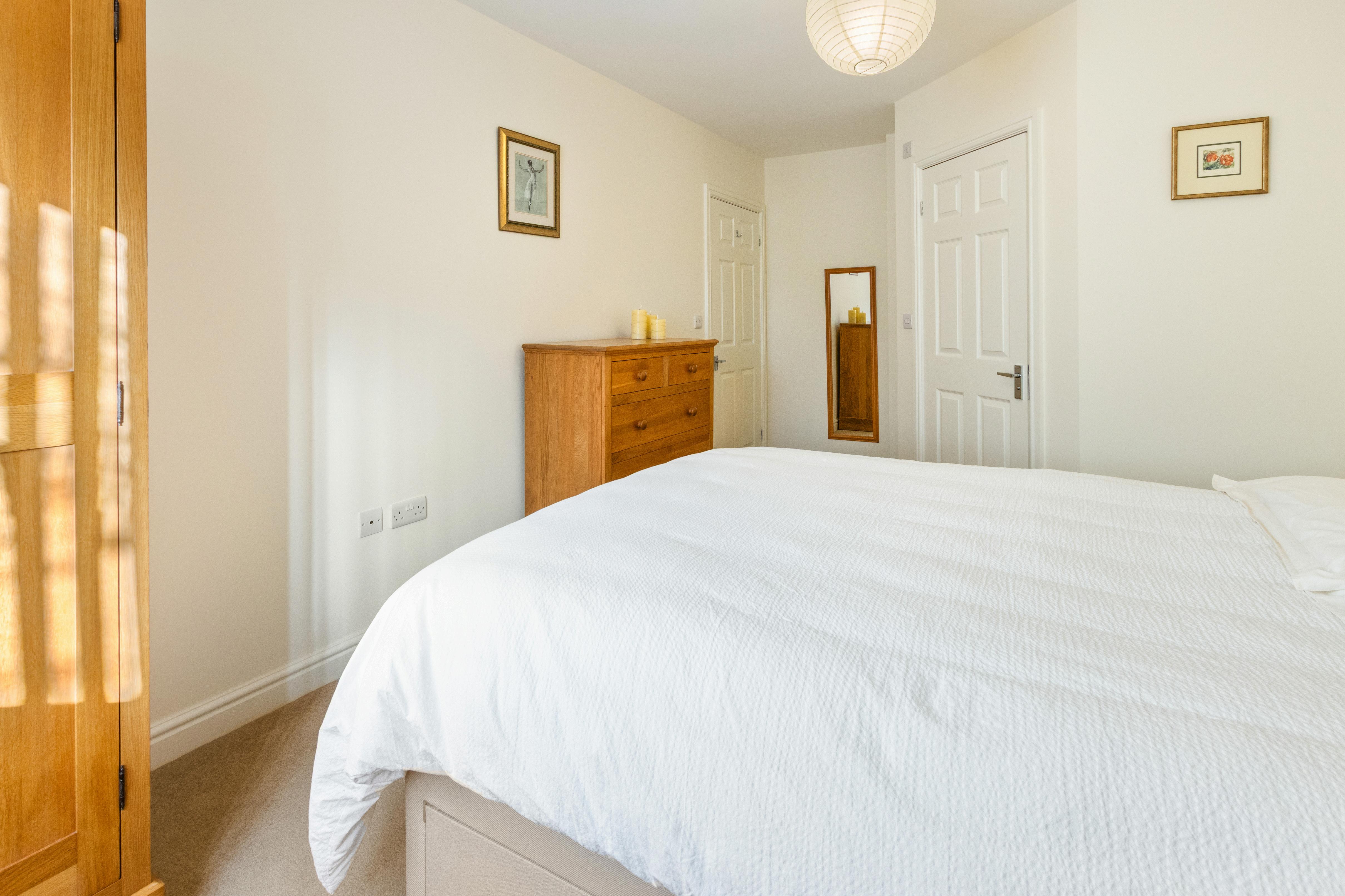 There are three well-proportioned bedrooms, offering flexible accommodation to suit a variety of needs. The main bedroom benefits from its own en-suite shower room, while the family bathroom features a shower over the bath. The second bedroom includes fitted wardrobes, providing excellent storage, and the third bedroom is currently utilised as an additional reception room, ideal as a snug, dining room or home office.