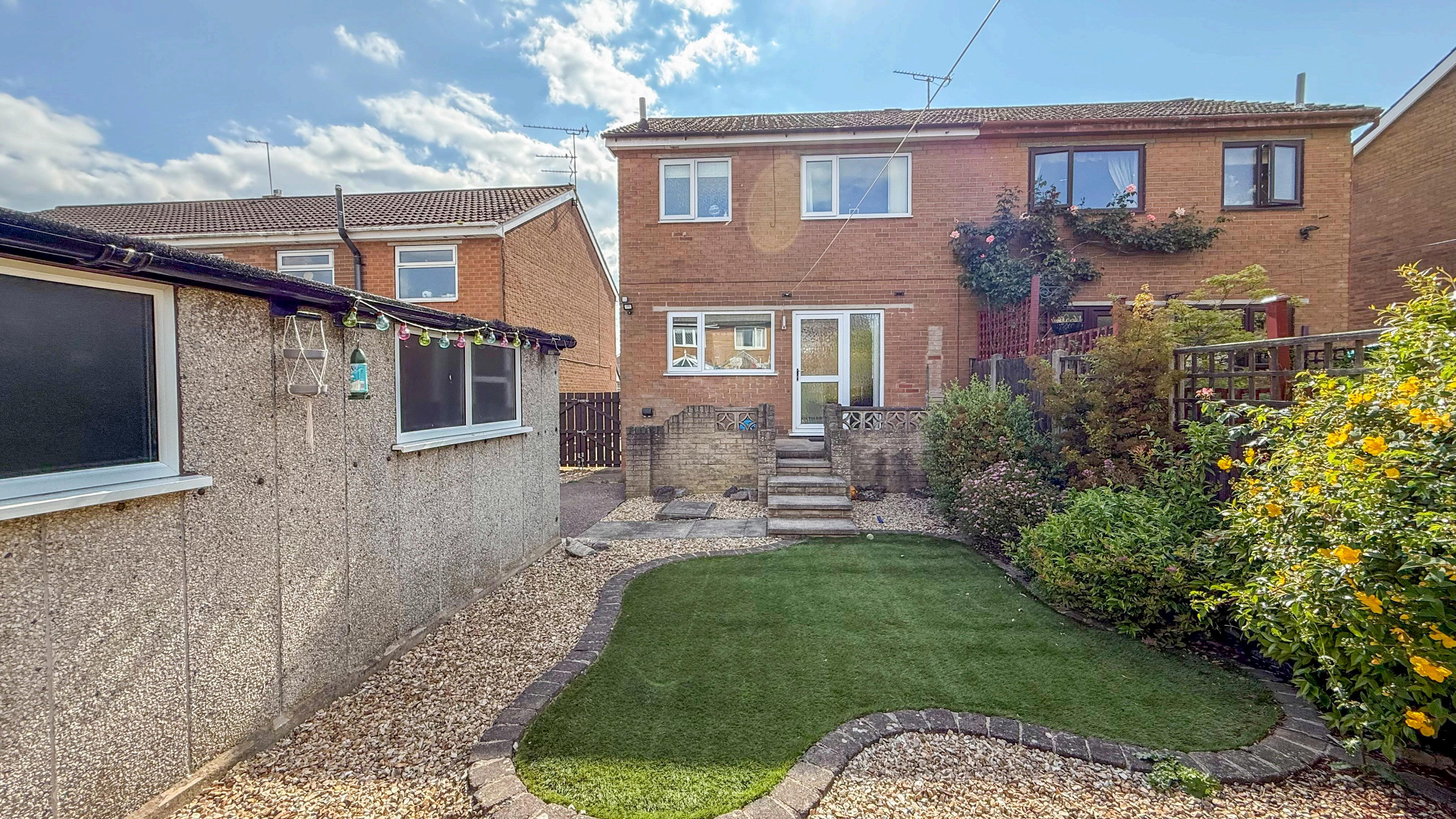 Externally, the property sits on a generous plot with ample off-road parking to the front and side, leading to a detached single garage with an electric door. The low-maintenance rear garden is fully enclosed and features a raised patio seating area, artificial lawn, and decorative pebble and planted borders—perfect for enjoying the outdoors with minimal upkeep.