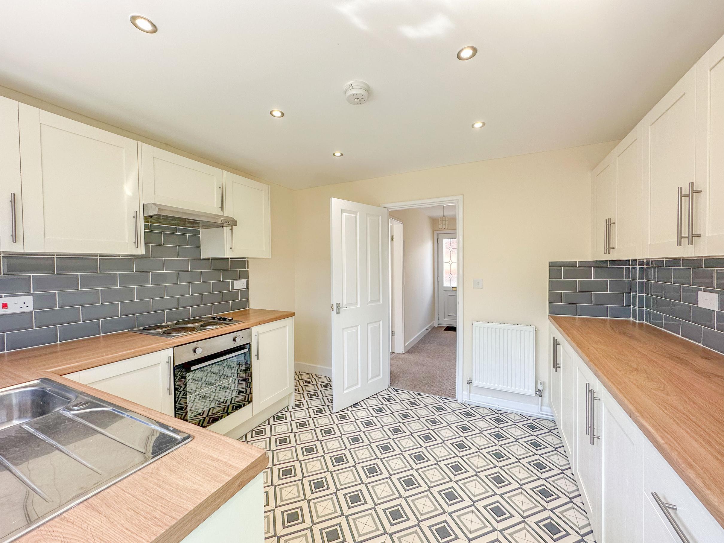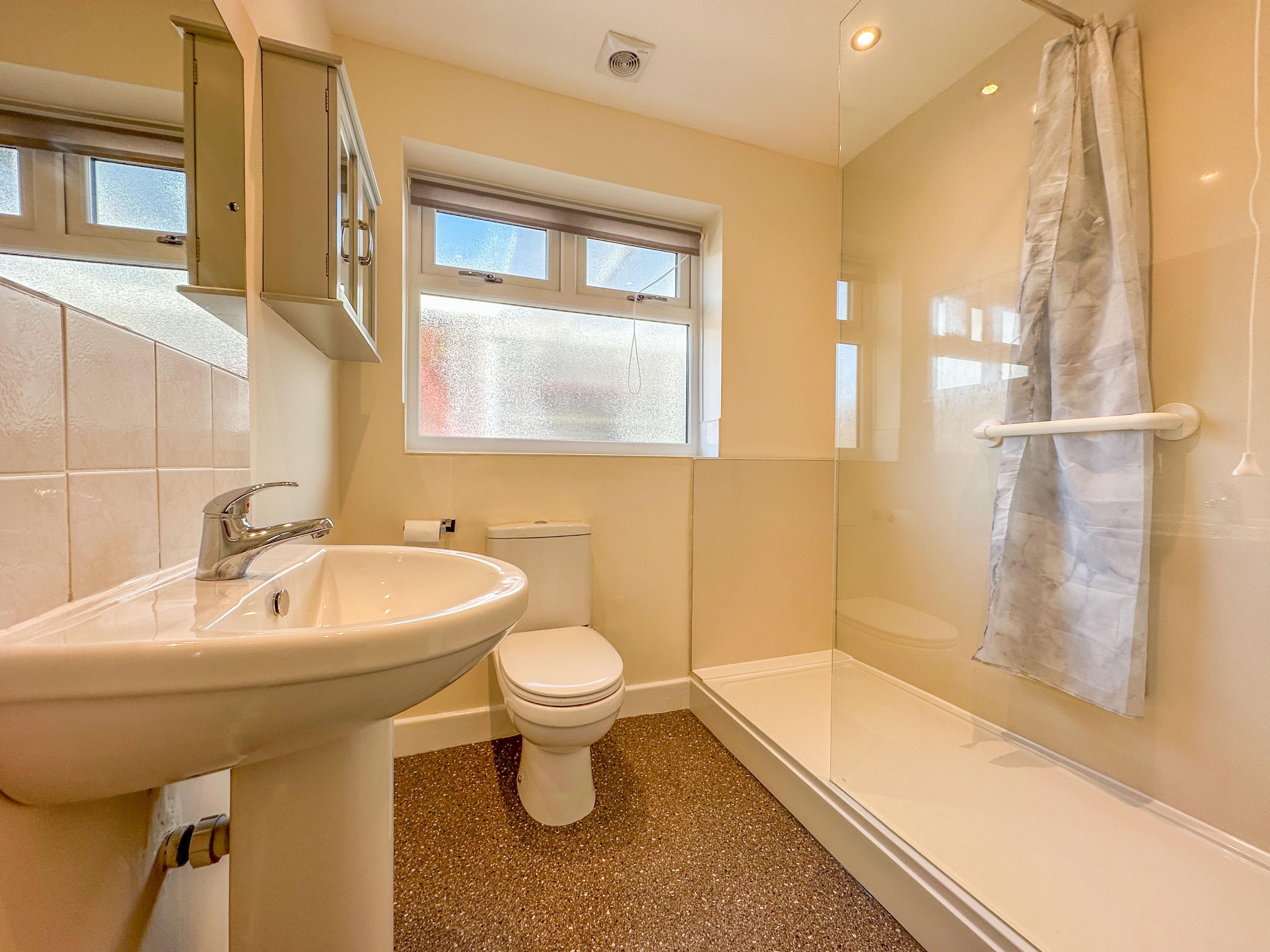 A front entrance door opens directly into a welcoming entrance hallway leading to the spacious living room with a walk-in bay window. A modern kitchen with a range of fitted units and stainless-steel sink, access door leading to the garden. A central hallway with access to the two rear-facing double bedrooms, both of which are served by the contemporary shower room with a walk-in shower cubicle, hand wash basin and W.C.