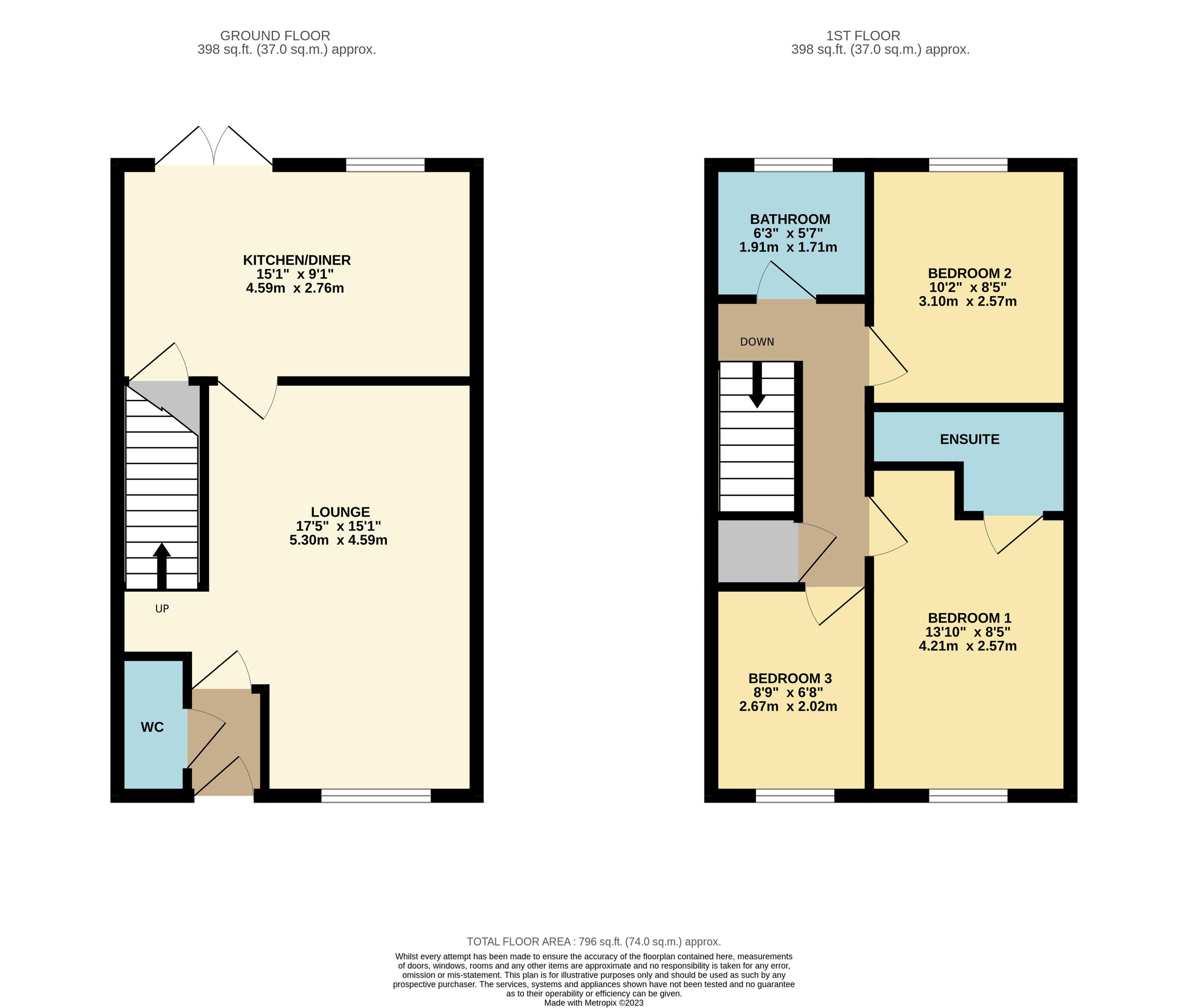 Ascending to the first floor, you'll be greeted by two generously sized double bedrooms, offering comfort and privacy. The master bedroom boasts the added luxury of an en-suite bathroom, providing a serene retreat within your own home. Additionally, there is a well-proportioned single bedroom, perfect for a child's room, home office, or guest accommodation. Completing the upstairs layout, a three-piece family bathroom awaits, ensuring convenience for all residents.