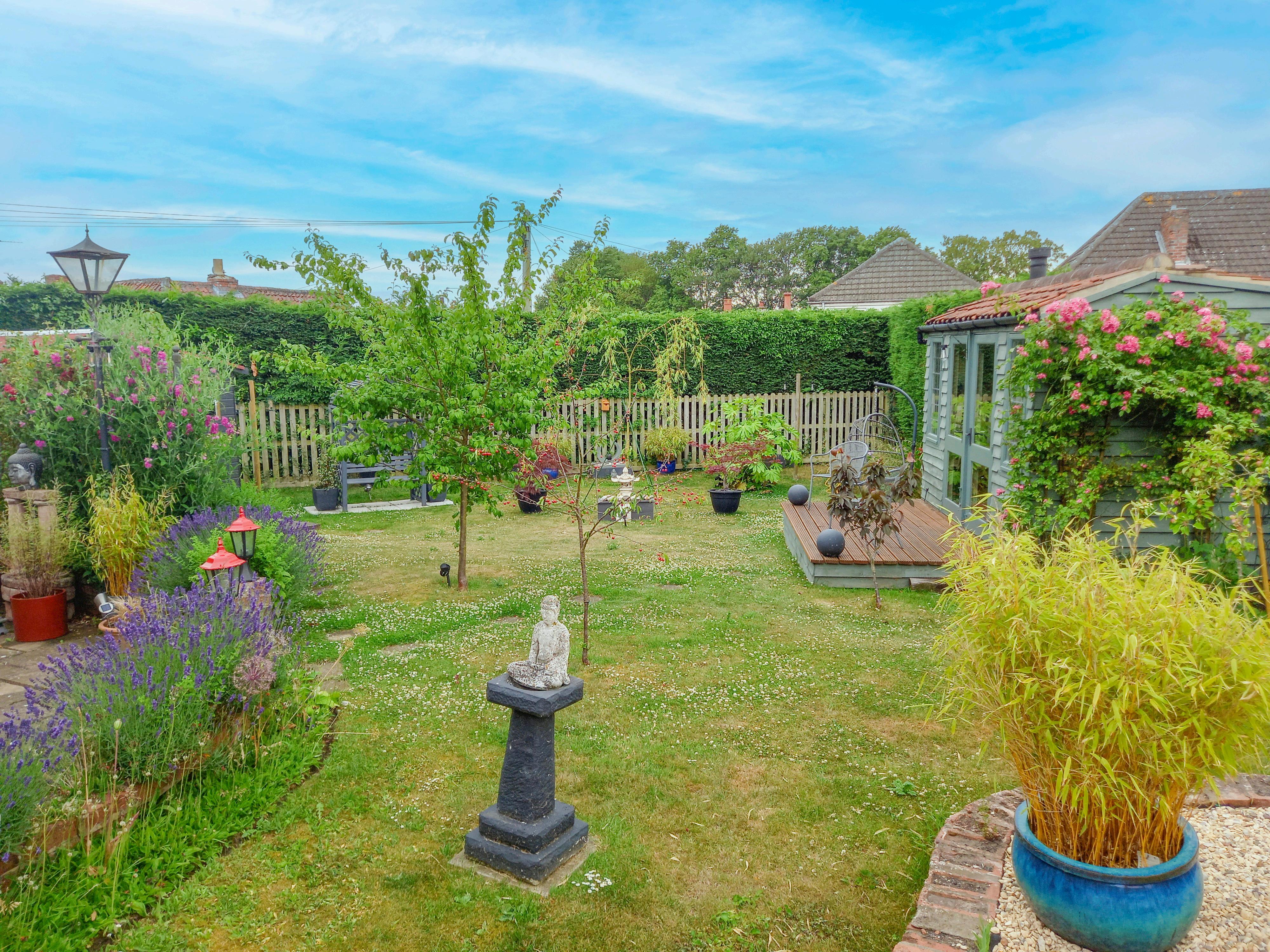 To the rear is a stunning private mature garden which is south facing and surrounded by high walls, fences and hedges and is non overlooked. A well-manicured lawn and raised flower beds set the scene of an English country garden with the added benefit of a vegetable plot and a 10ft x 6ft green house, built in compost bin, brick garden tool store with electricity, a 12ft x 10ft timber garden workshop / shed which is fully insulated and also benefits from electricity and a beautiful garden office / summer house that is insulated and can be used all year round for working from home or just relaxing featuring a wood burning stove fire, electricity, and enjoys the south facing position.