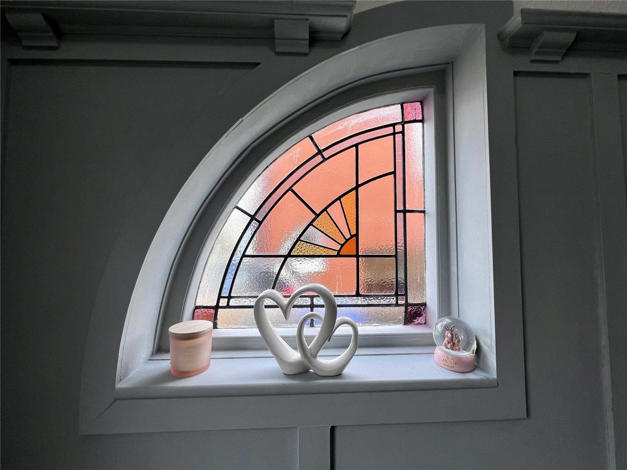 Elegant Entrance Hall: Step into a welcoming and light entrance hall, featuring a unique stained glass window. There is also a convenient W/C located here.