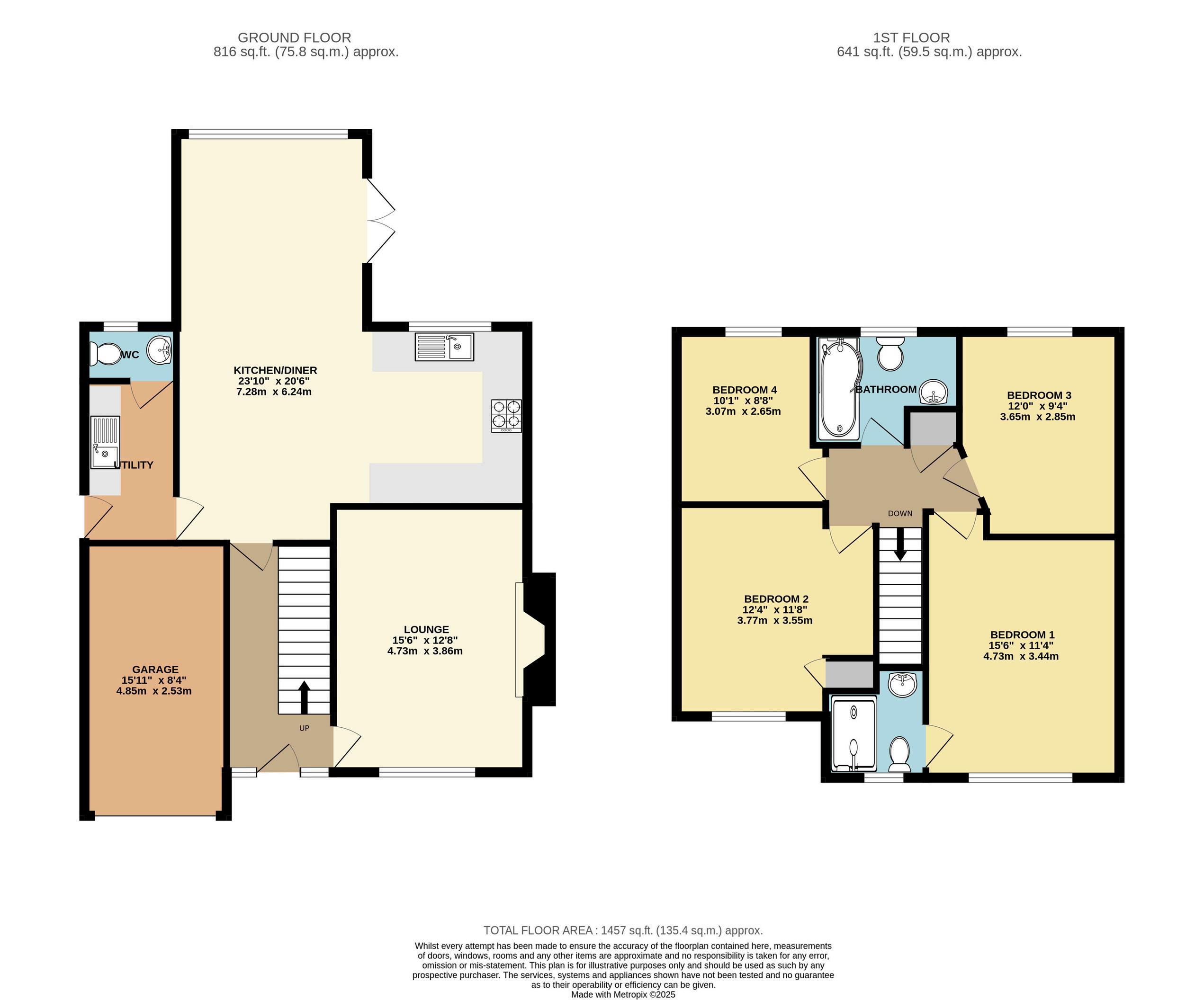 Off the kitchen, a practical utility room and a downstairs WC provide added convenience, keeping household tasks tucked neatly away.