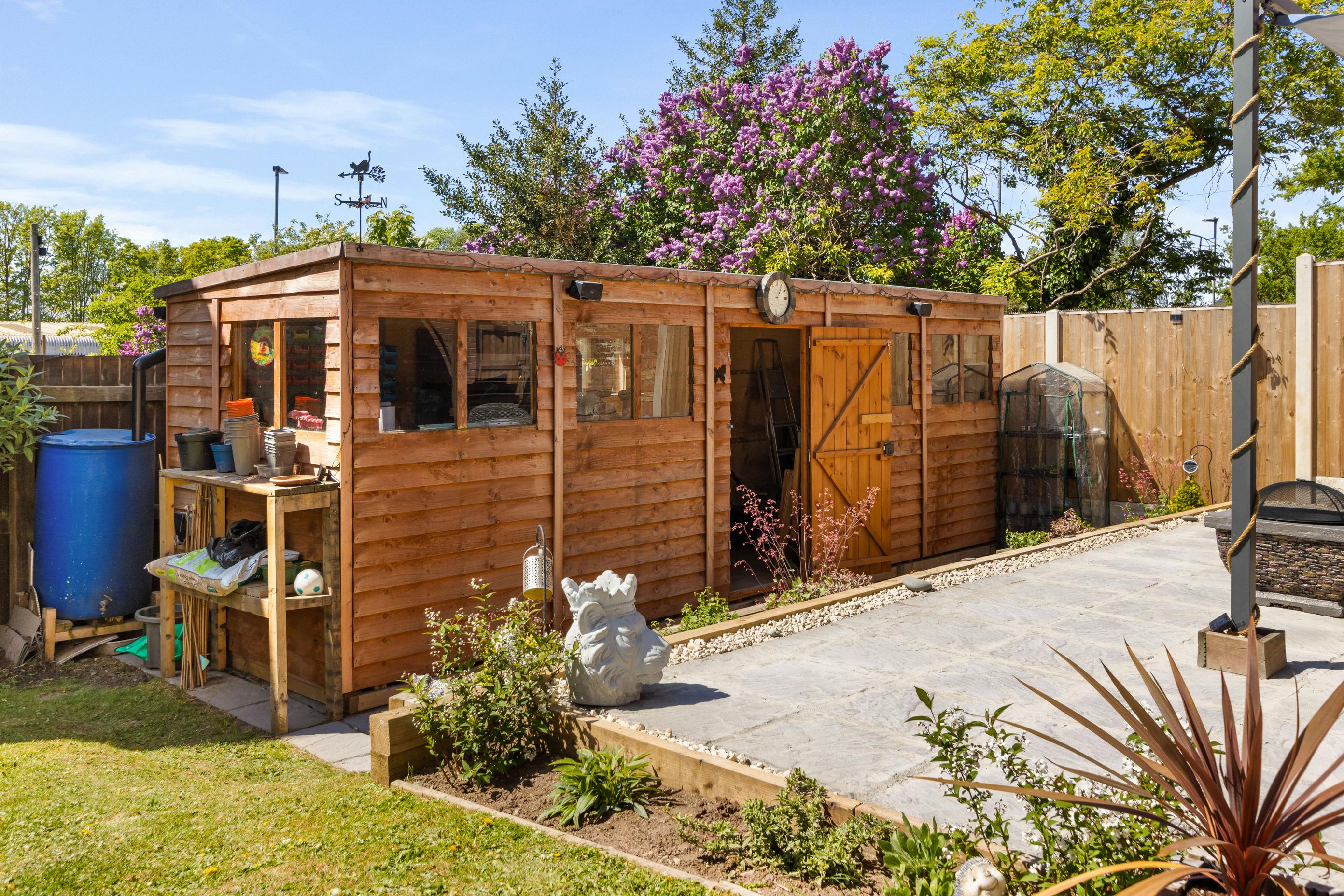 Externally, the property continues to impress. A detached double garage provides ample storage or parking and has been freshly painted internally, while a 20' x 6' powered shed offers additional workspace or utility potential. All outdoor woodwork, including fencing, gates, fascias, doors, garage doors, and posts, has been repainted for a pristine finish. The rear garden has been thoughtfully landscaped with a new patio area, secure gated side access, and benefits from a south-west facing aspect enjoying sunlight throughout the afternoon and evening, making it ideal for relaxing and entertaining outdoors.