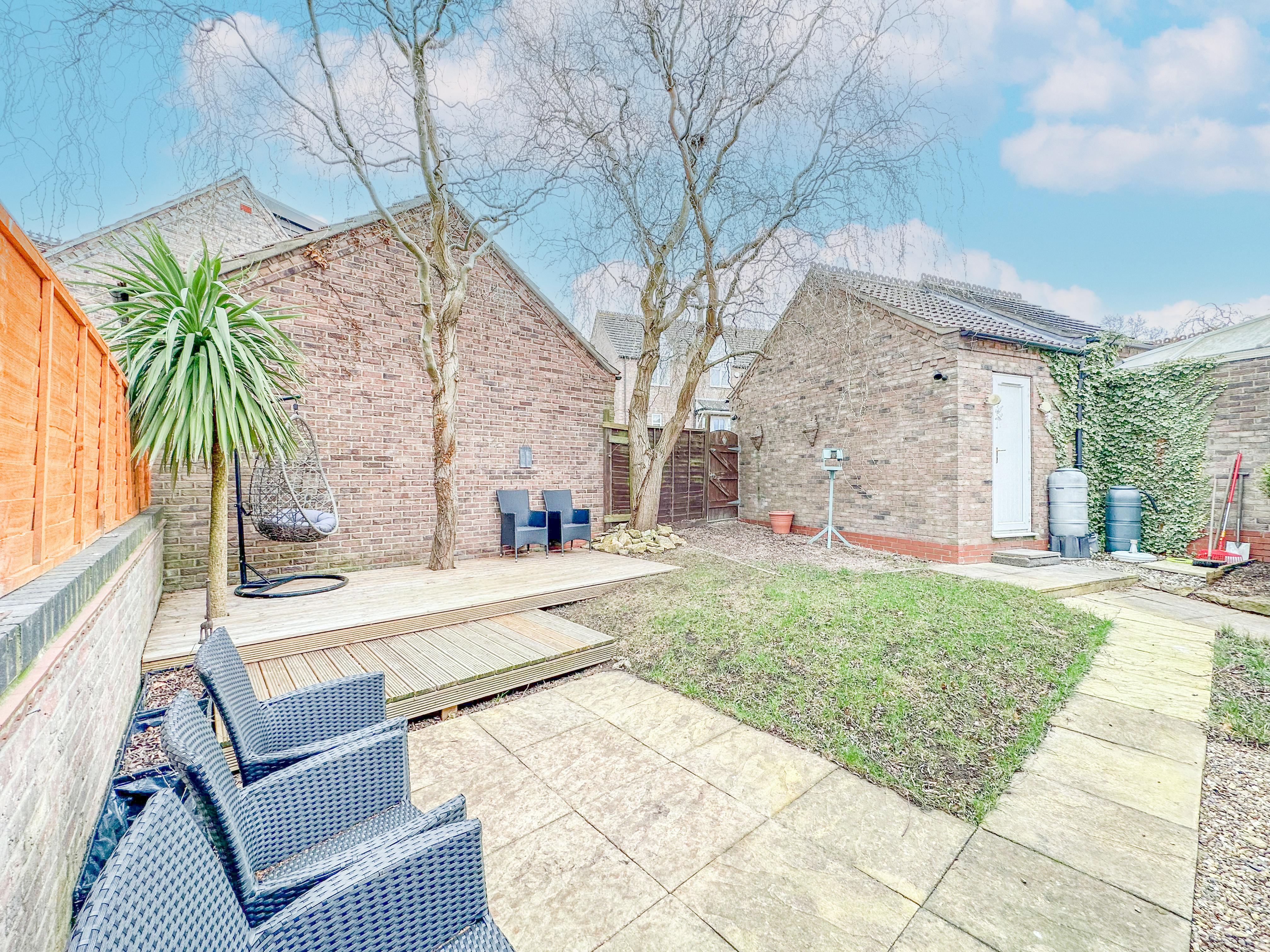 Externally, this home benefits from a low-maintenance front garden that has a low buffer wall with decorative wroughtiron fencing and an enclosed rear garden with a flagstone patio for entertaining, and a raised timber decking seating area. To the rear of the property is the driveway leading to the garage and allocated parking.