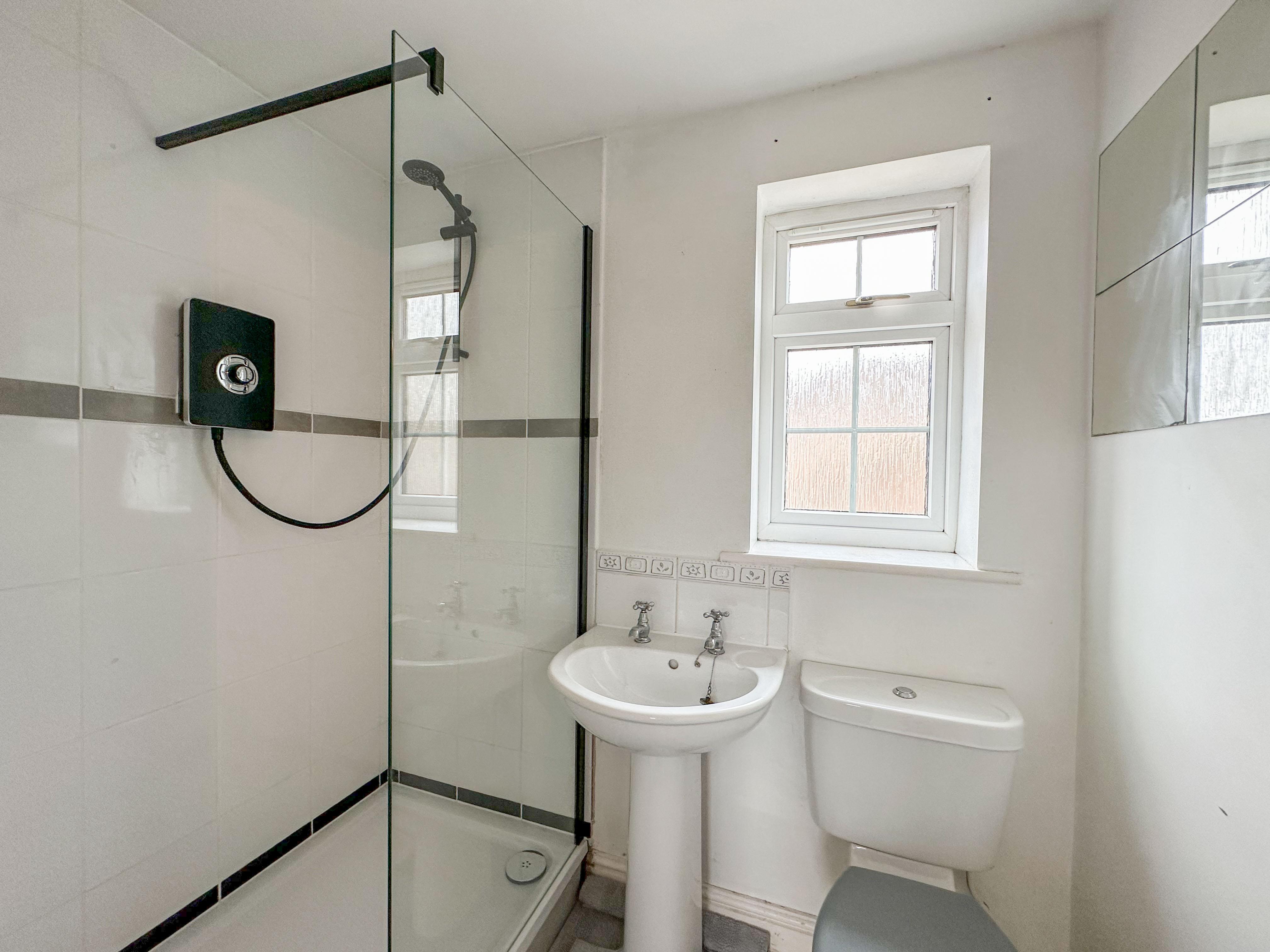 To the first floor is the master bedroom that benefits from an en-suite, two additional bedrooms that are both served by the modern family bathroom with a white three-piece suite with a bath, a hand wash basin, and a low-level flush W.C.