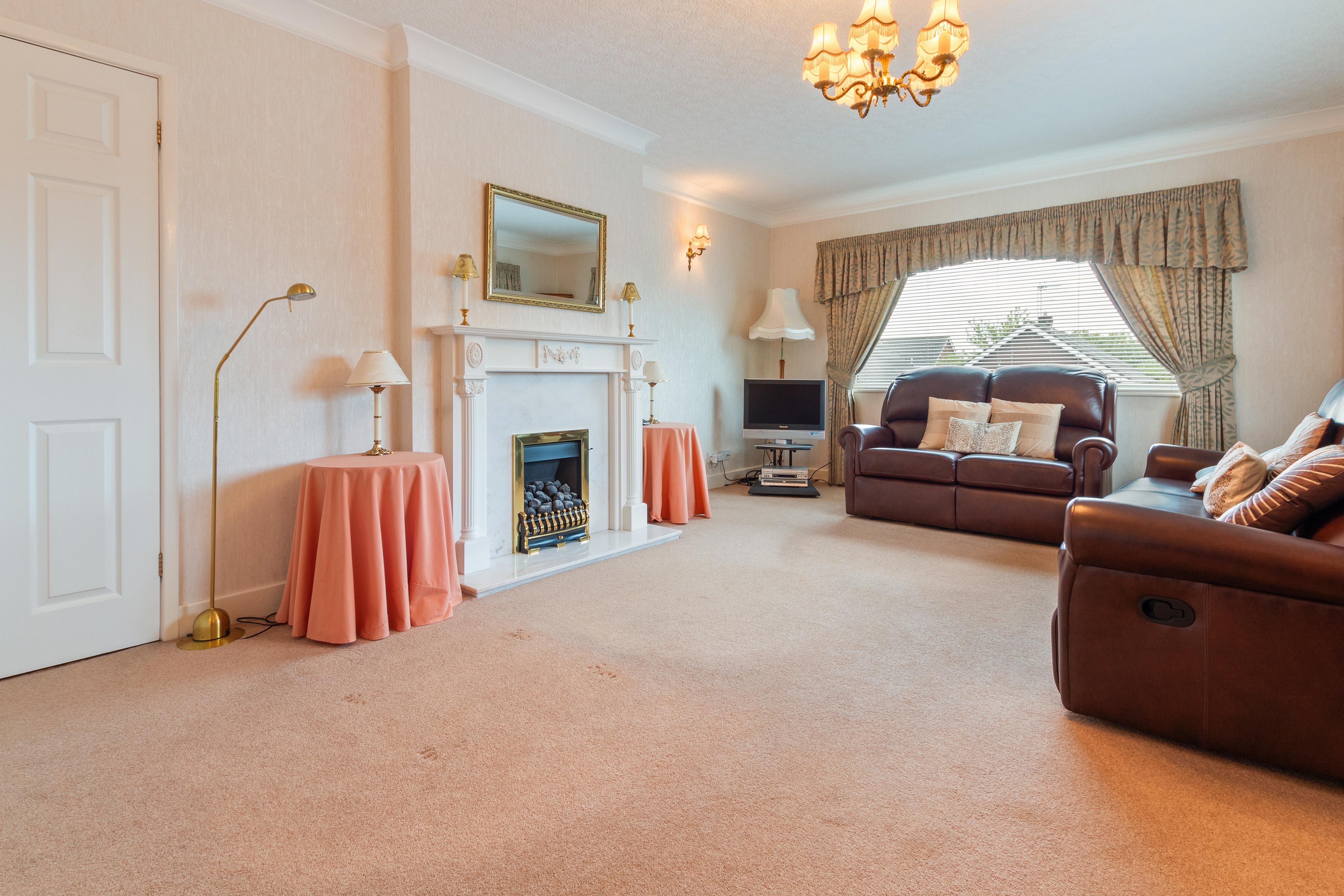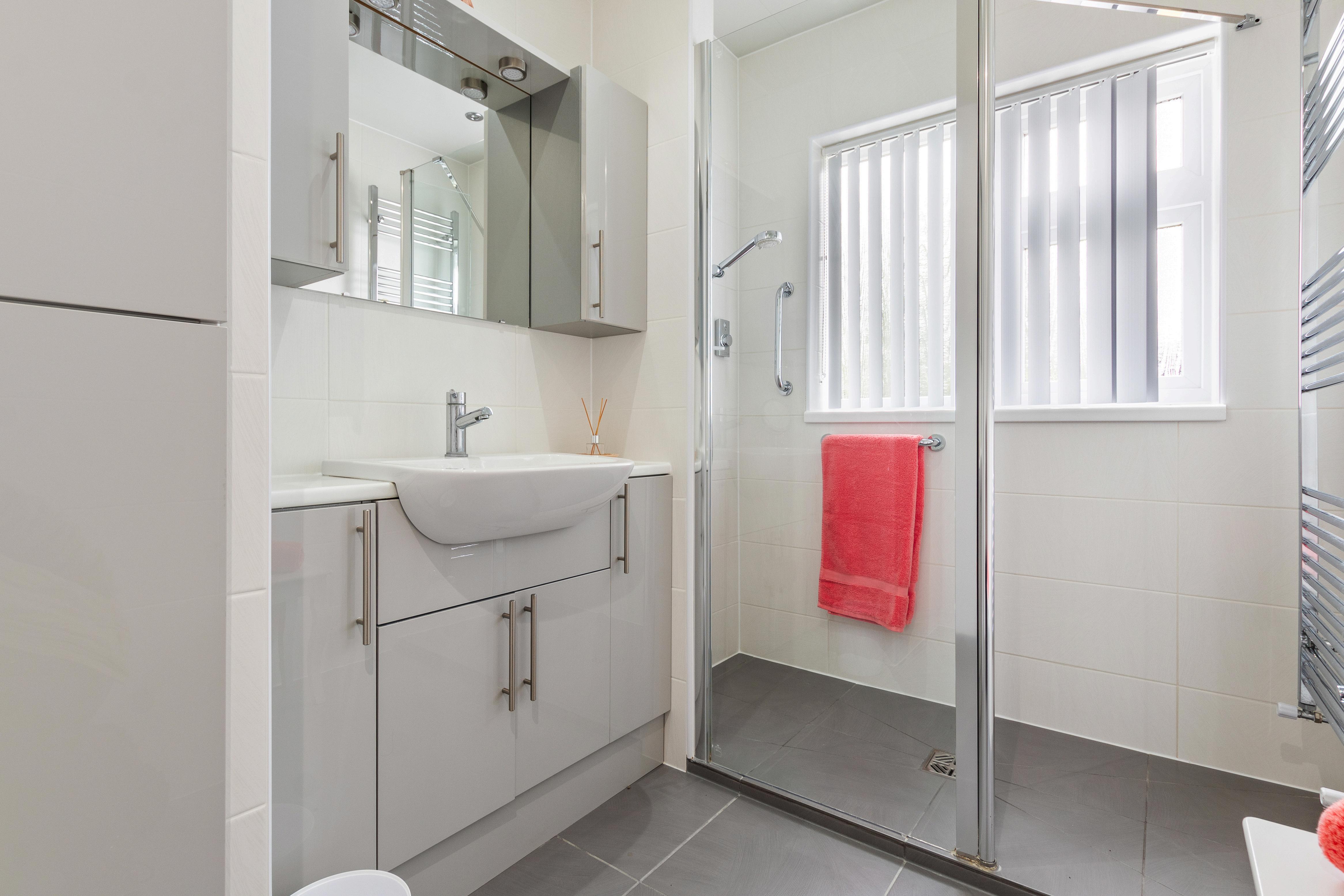 The entrance door opens into a welcoming light and airy hallway and leads into the generous dual aspect lounge with a feature fireplace. Off the central hallway is a fitted breakfast kitchen that benefits from a range of base and wall mounted units, a built-in oven, hob with an extractor fan above, and an integrated fridge and freezer. Flowing seamlessly from the hall is the rear facing master bedroom that is currently utilised as a dining room by the current owner, a front aspect double bedroom that is complimented with fitted wardrobes and a third generous bedroom to the rear. All are served by the modern shower room with a walk-in shower cubicle, a vanity hand wash basin. A handy separate cloakroom houses a low-level flush W.C.