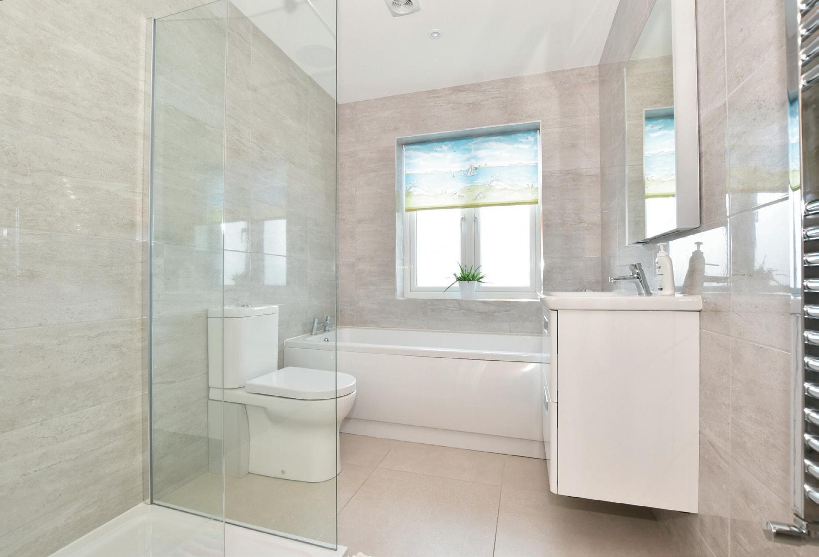 This property benefits from three evenly proportioned double bedrooms, all laid with carpet. Off the main bedroom is an immaculate shower room, with a very generous, level entry shower and porcelain floor tiles. The spacious family bathroom has another fabulous, large shower with a separate full-sized bath and is finished beautifully with white, high-gloss furniture. A large recess in the hallway has been fitted with full height sliding doors creating a large storage area with fitted shelving. Spanning the length of the house is the loft, currently used for storage and the hot water tank and boiler, but full of potential for extra living space (STPP).