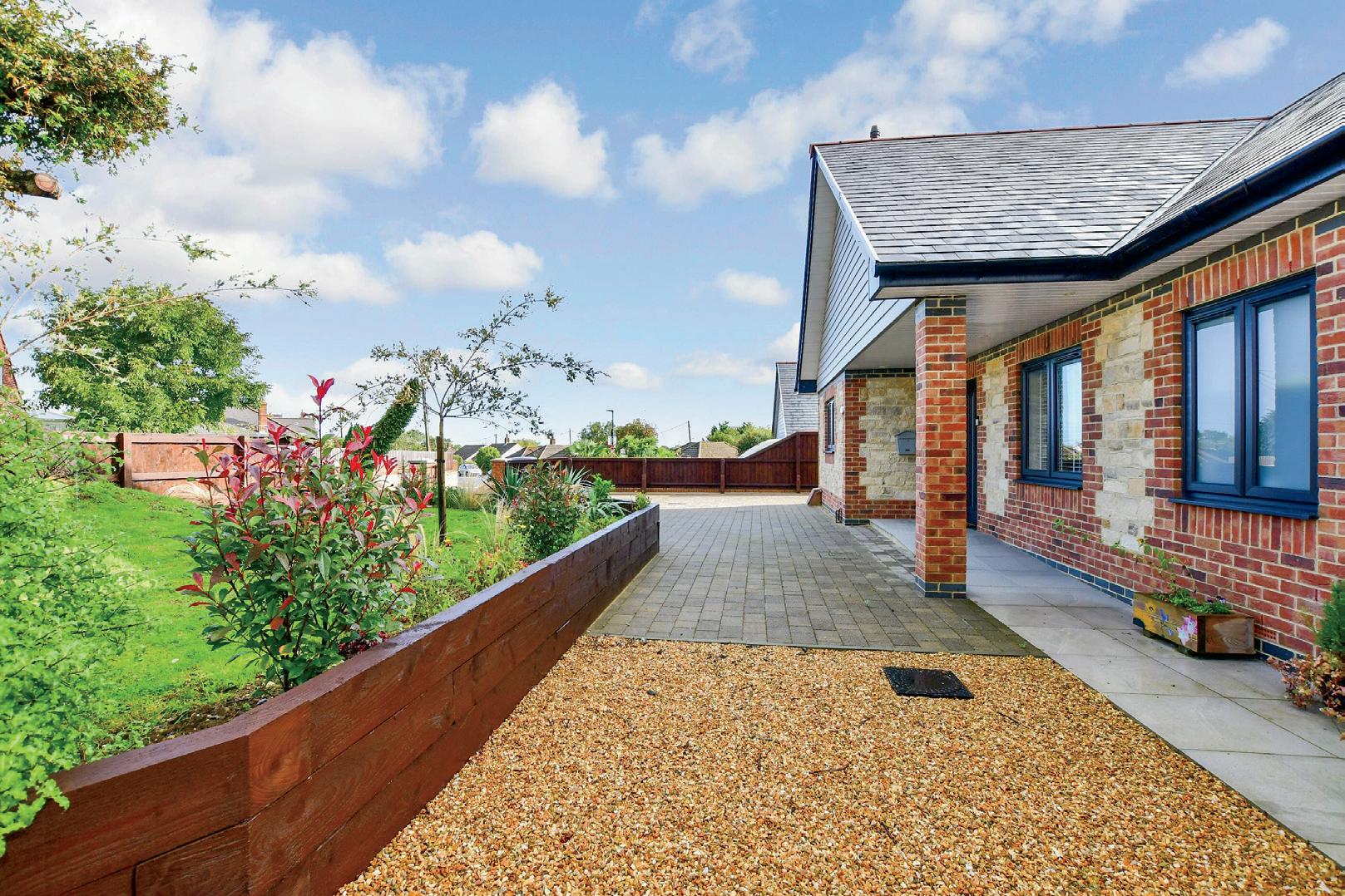 To the front of the property is a sizeable block-paved driveway with enough room to comfortably park four vehicles. The good-sized garden extends around the back and to the side of the property and is bordered by a pretty brick wall. This lovely garden is mostly laid to lawn, with a couple of young sapling trees, and a spacious patio.