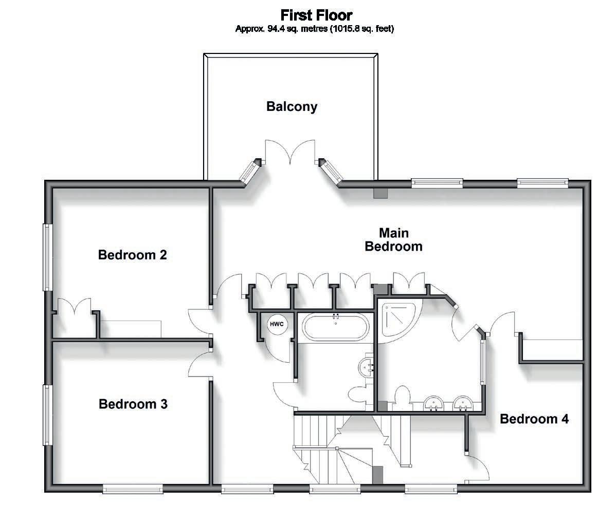 Bedroom 4 9’6 (2.90m) x 9’2 (2.80m) narrowing to 7’8 (2.34m)