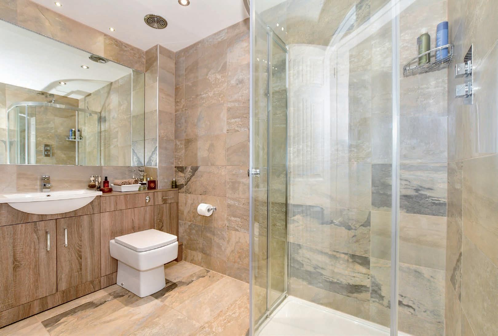 The staircase splits with access to a large landing in one direction that leads to the contemporary family bathroom with a deep bath and modern shower screen as well as a vanity basin and two double bedrooms including one that is dual aspect and the other that includes fitted mirrored wardrobes and dressing table with a large built in wall mirror. There is also a door to the impressive main suite from the landing. This lovely room has a good sized seating area, a wall of mirrored cupboards, shelving and fitted bedroom furniture with an arched wall mirror as well as French doors to the private balcony with wrought iron railings where you can sip your morning coffee enjoying the wonderful views across the beautiful garden. There is a large and trendy en suite shower room with twin vanity basins and a door to a single bedroom. This would make an excellent walk-in dressing room/nursery or even an office as it can also be independently accessed from the divided staircase.