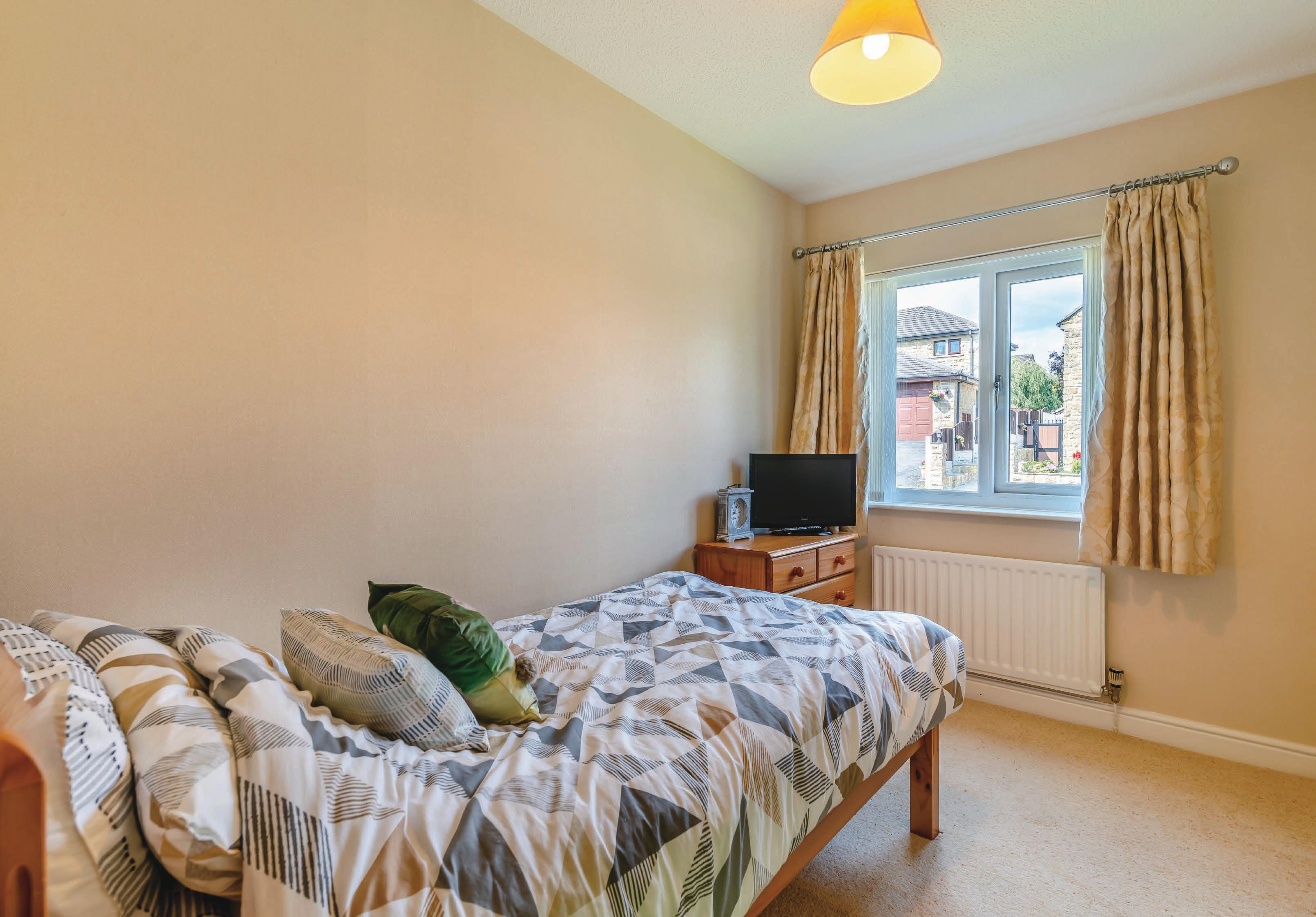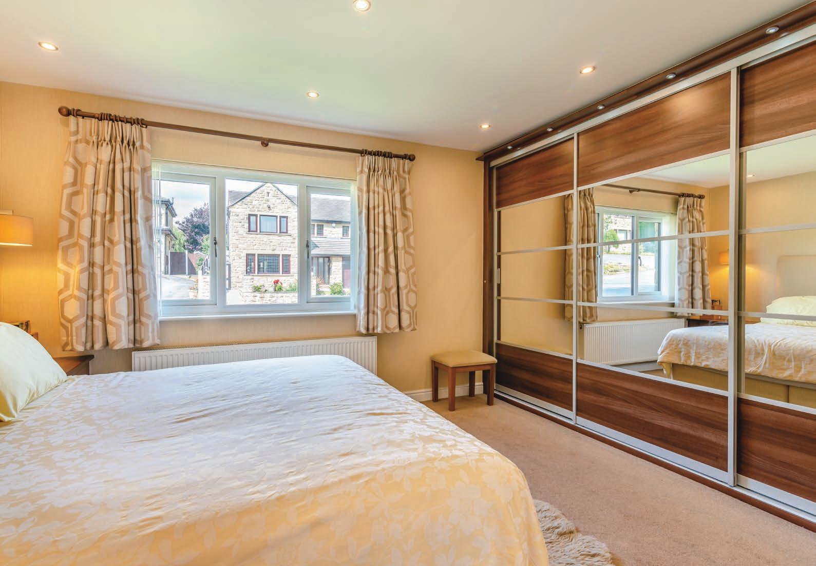 The property has four additional bedrooms, the principal situated to the front aspect of the home with a window overlooking the garden, generous wardrobes to the expanse of one wall, with mirror fronted sliding doors and matching bedside cabinets. A generous en-suite including a corner jacuzzi/ spa bath presents a modern three-piece suite, with complimentary tiling to the walls and floor, a heated chrome towel radiator and a frosted window.