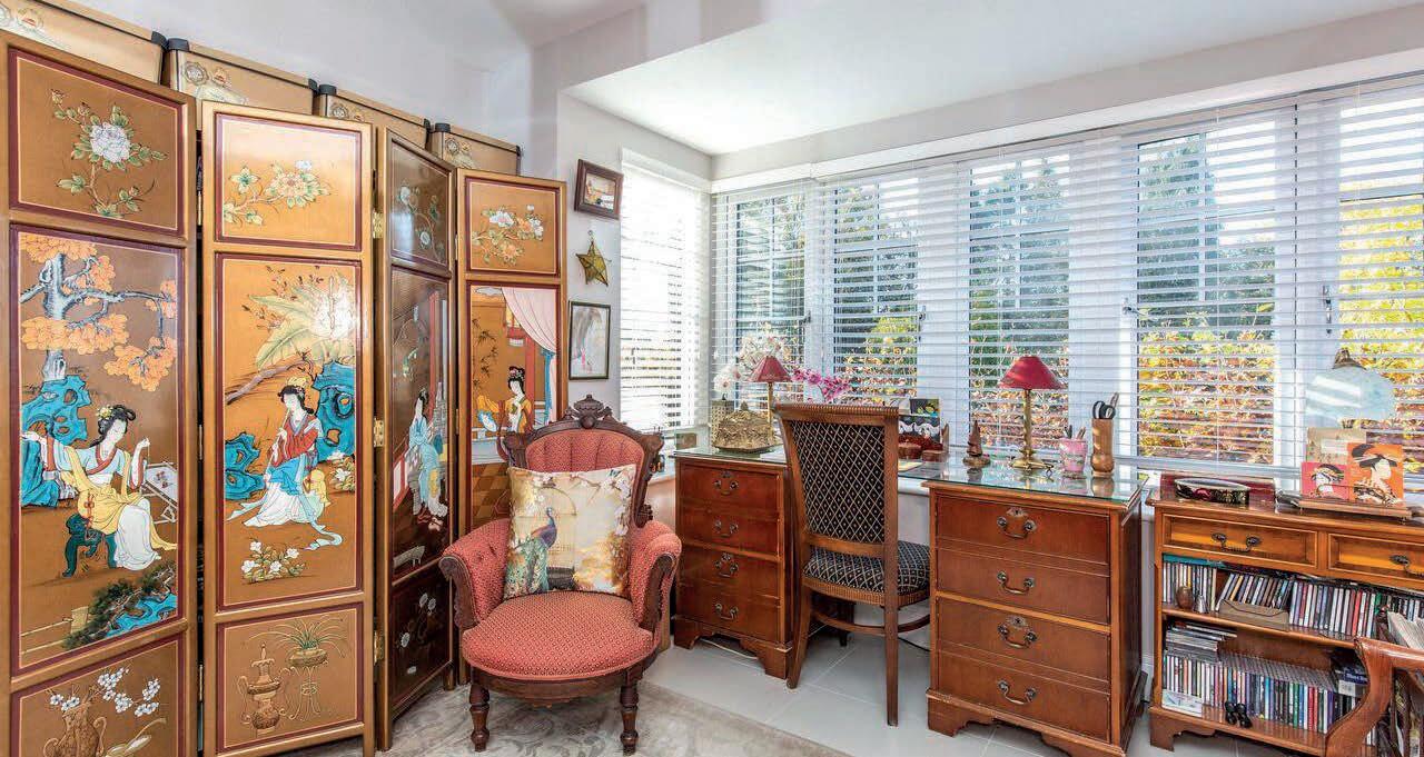 There is open access to a charming garden room with a vast picture window and a door to the terrace as well as access to a large laundry room with tall fitted cupboards, a deep ceramic sink, space and plumbing for a washing machine and a door to the driveway. The laundry room leads to a double bedroom/office with Karndean flooring, electric radiators, an en suite shower and a glass door to the driveway, so is ideal as an office as business visitors do not need to venture into the private part of the home. Alternatively, this area could always become a self-contained annex for family members as the utility room could be converted into a separate kitchen/breakfast room if required.