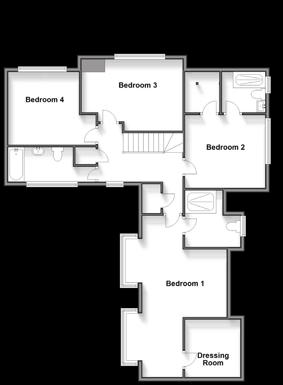 Bedroom 1 23’2 x 14’3 (7.07m x 4.35m) narrowing to 10’11 x 7’9 (3.33m x 2.36m)