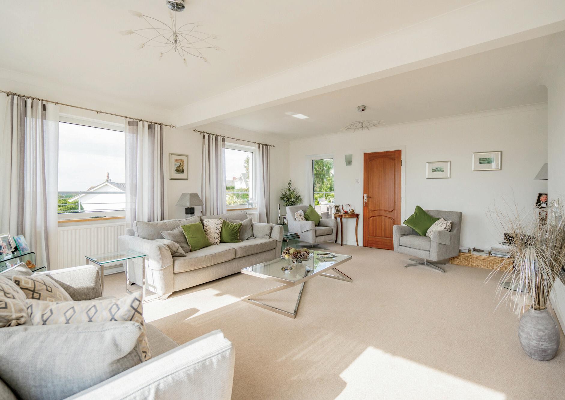 The lounge is a wonderfully bright and airy space, featuring triple aspect windows that offer panoramic sea, garden, and Gower views. The room is carpeted and boasts a charming feature gas fireplace that adds to its cosy ambiance. With its inviting atmosphere, the lounge is an ideal setting for unwinding or socialising with guests, making it a perfect retreat within the home.