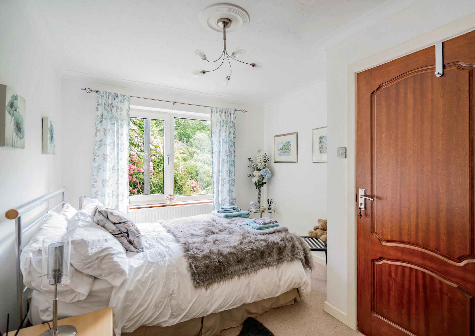 Bedroom three is a naturally well-lit, carpeted lovely-sized double bedroom, benefiting from dual aspect windows that offer views of the mature garden.