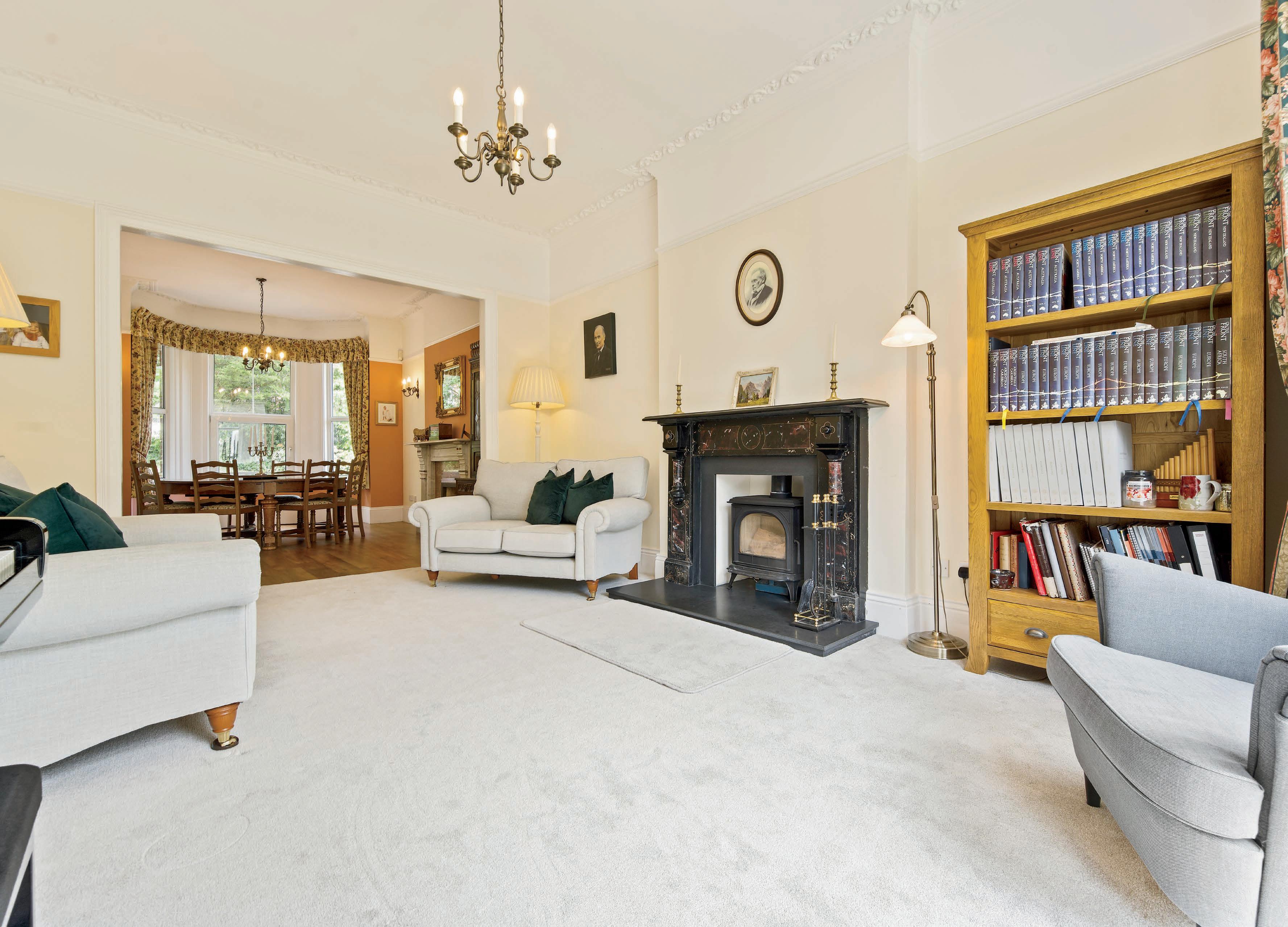 Venturing further, we find ourselves in the spacious and beautifully appointed reception rooms. With wood burning stoves, high ceilings, ornate mouldings and large windows which flood the rooms with natural light, creating an ambiance of tranquillity and sophistication. This home is infused with a sense of history and stories of a bygone era.