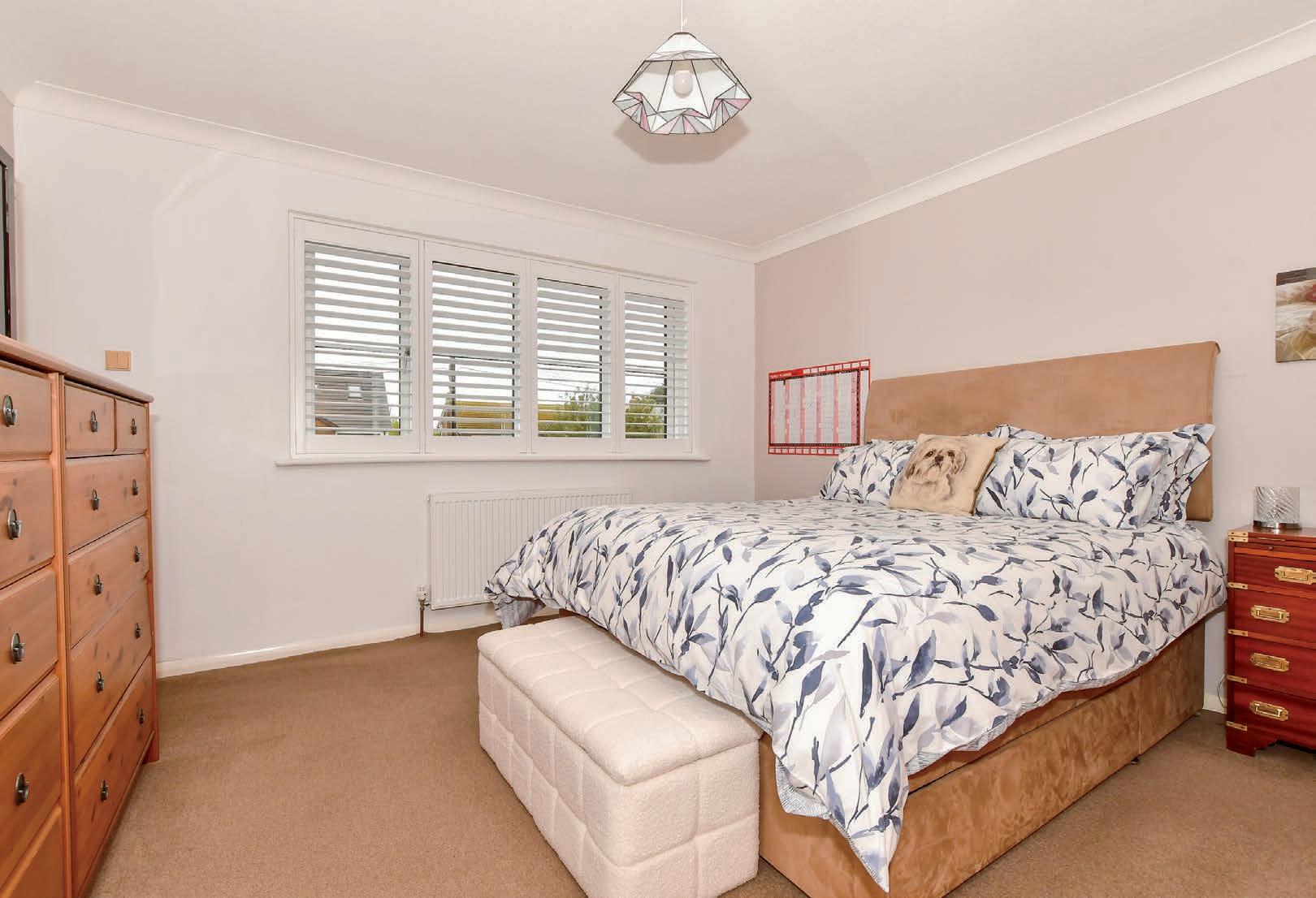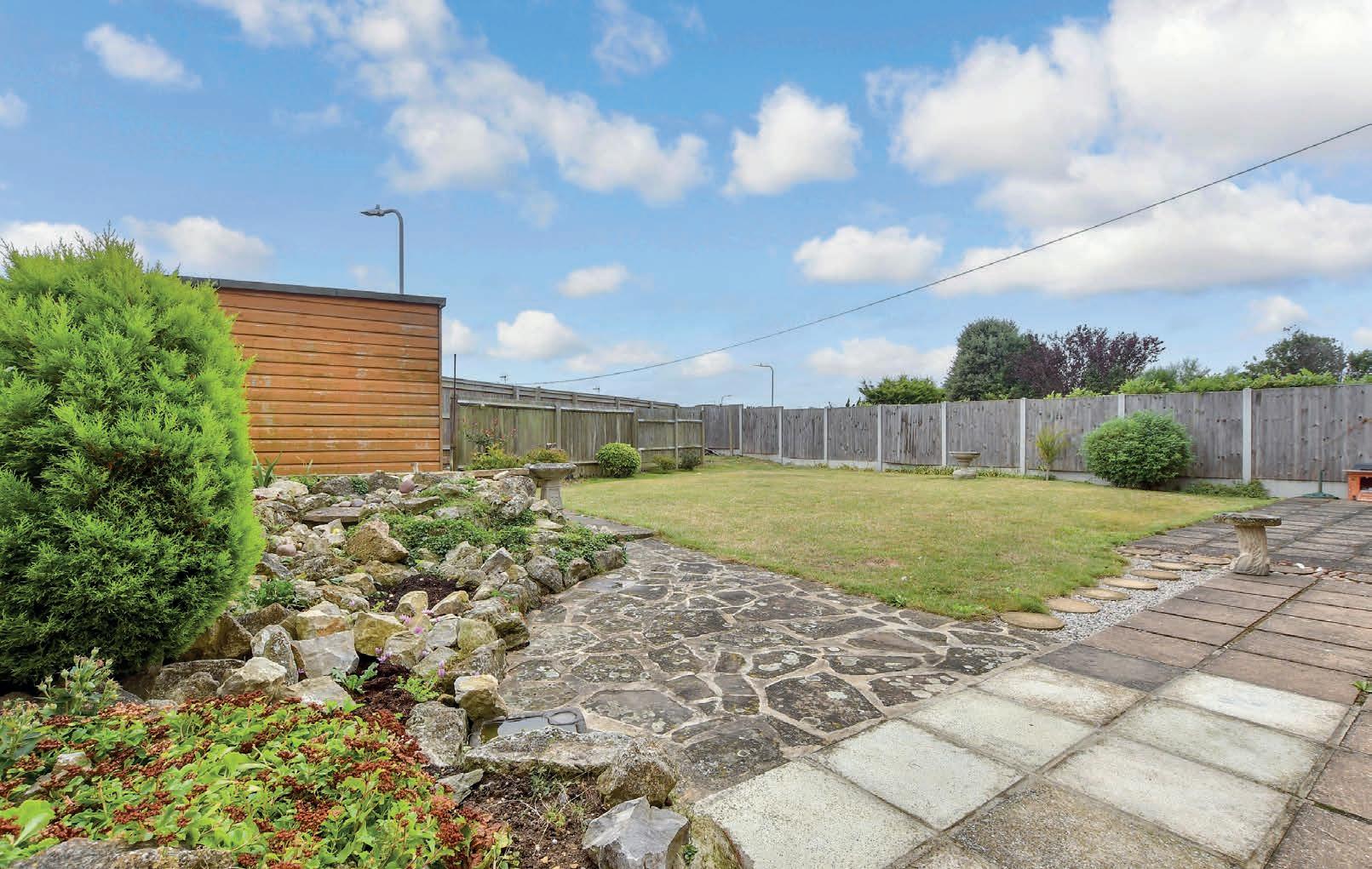 The easy-to-manage south facing rear garden is surrounded by close board fencing providing privacy and security. It includes a wraparound paved path as well as the terrace for al fresco dining that borders a large lawn and a crazy paved patio with a charming rockery. This leads to a large garden shed that would make an excellent workshop/man cave and a semi-wild area home to hedgehogs and other wildlife.