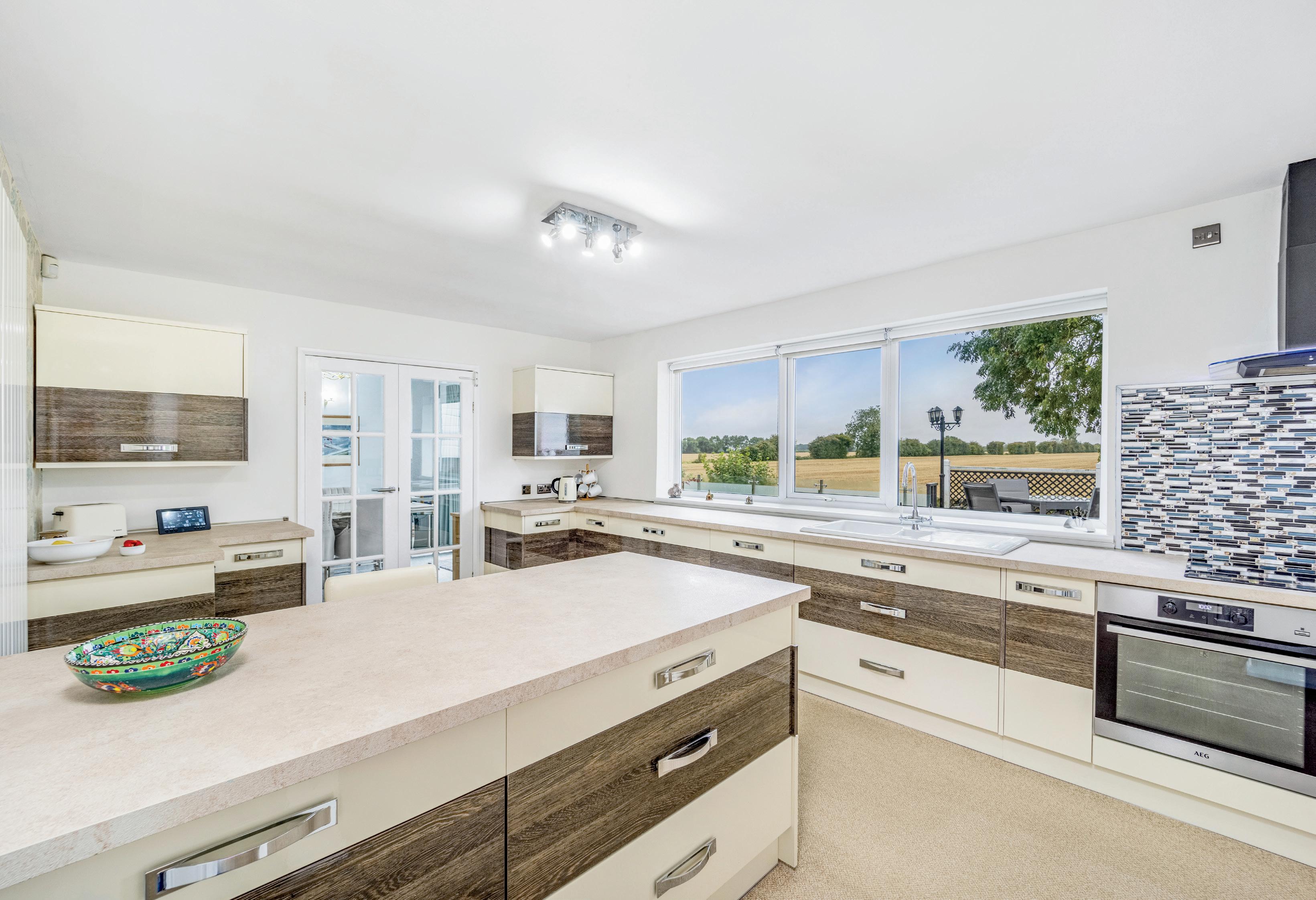A uniquely designed, substantial home built in 1973, now with solar panels, has been completely refurbished and provides huge spaces flooded with natural light that connect perfectly with the expansive, raised decking and garden surrounding the property. With 5 double bedrooms, one en suite on the ground floor, and extensive open plan living, views of the wraparound garden with its pond and the open fields beyond are enjoyed year round.