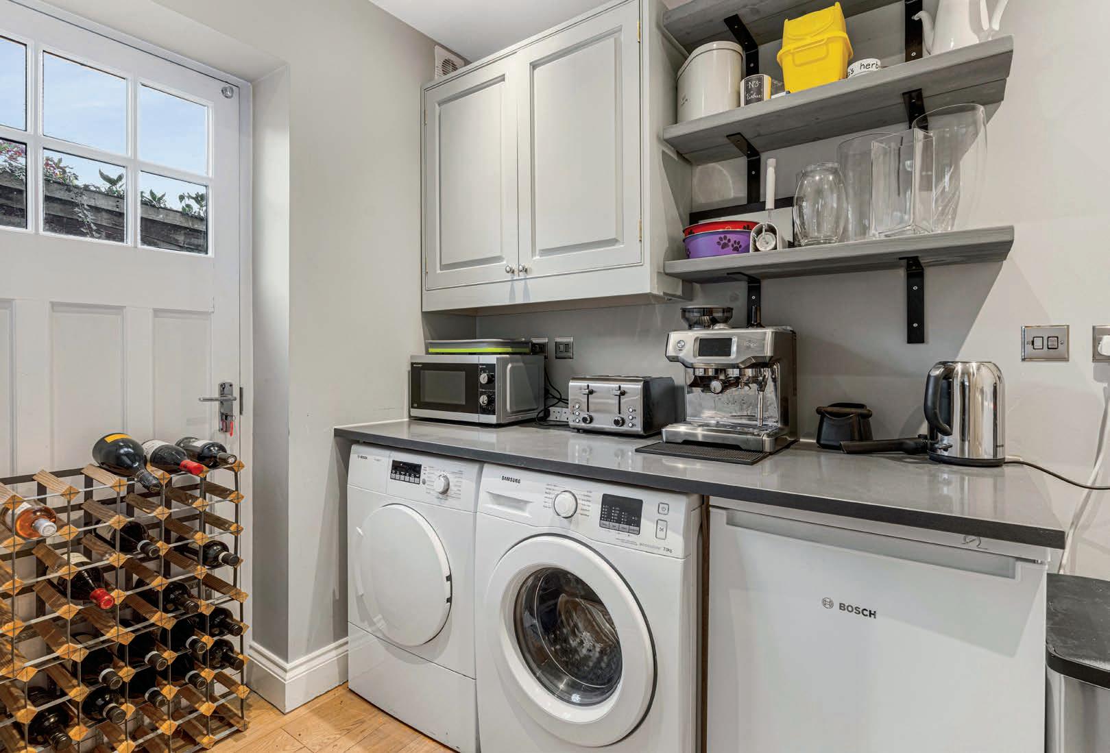 You are immediately struck by the modern and homely interior of this property, with beautiful engineered oak flooring throughout. The wide hallway is light and bright, with a cloakroom and stairs on the left and reception room to the right. Currently set up as a home office, this room also lends itself as a family room. On your left, the lounge has a wood burner set within a feature chimney breast and plenty of space for entertaining or enjoying cosy evenings at home. Moving through the hallway, you enter a gorgeous open plan kitchen diner which is flooded with light from the huge apex gable windows. The dining area is a fabulously social space, with bespoke shelving at one end of the room and a set of patio doors. Moving back to the centre of the room there is seating at the breakfast bar overlooking the kitchen. A timeless design in neutral colours, this space has everything you need, including a wine fridge. The Rangemaster double oven is a real focal point and the whole kitchen is set off by a vibrant glass back splash in a gorgeous teal blue. The utility room is tucked away at the back of the kitchen and houses the washer and dryer, another fridge and a worksurface for other appliances. There is more storage in here and the back door opens on to the side of the property.