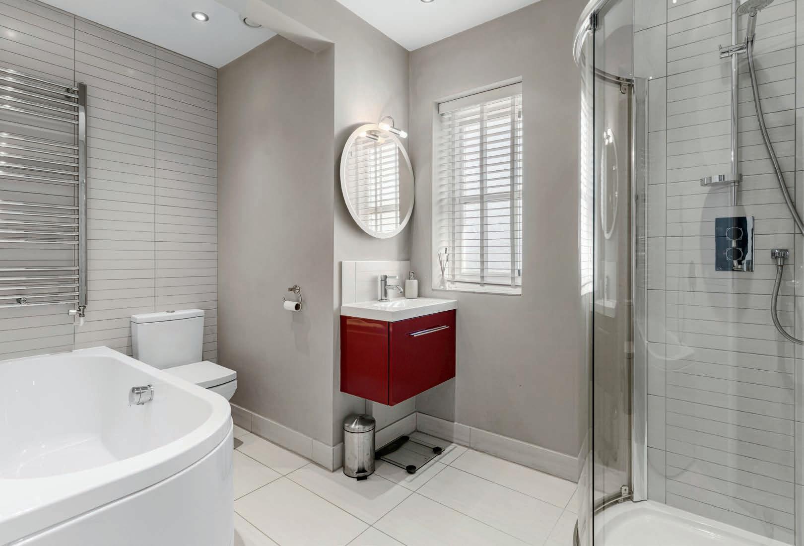 There is a velux window letting in light at the back of the room, and the en suite offers another gorgeous retreat with a shower cubicle and heated column towel rail.