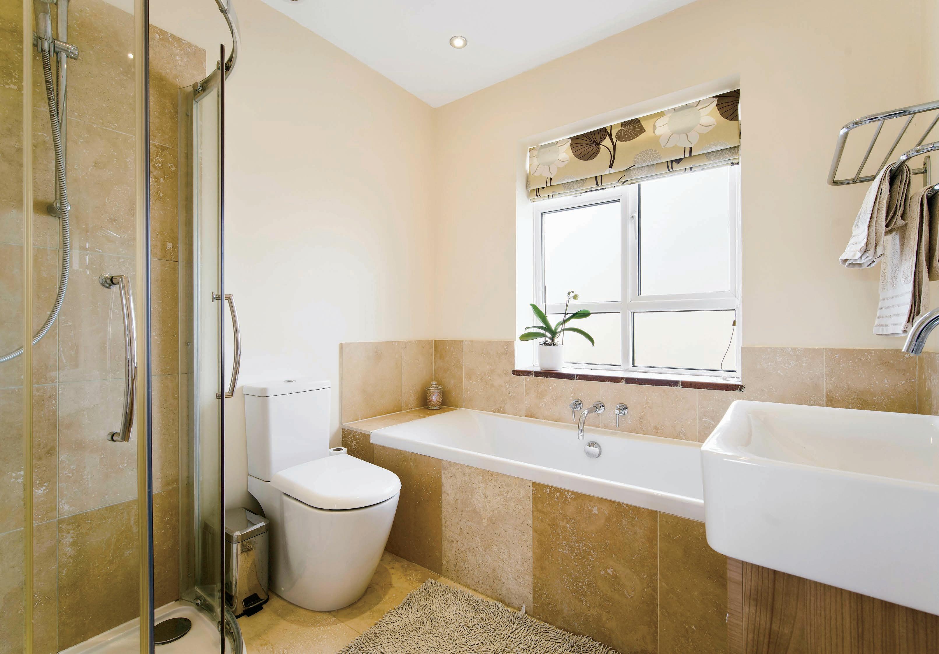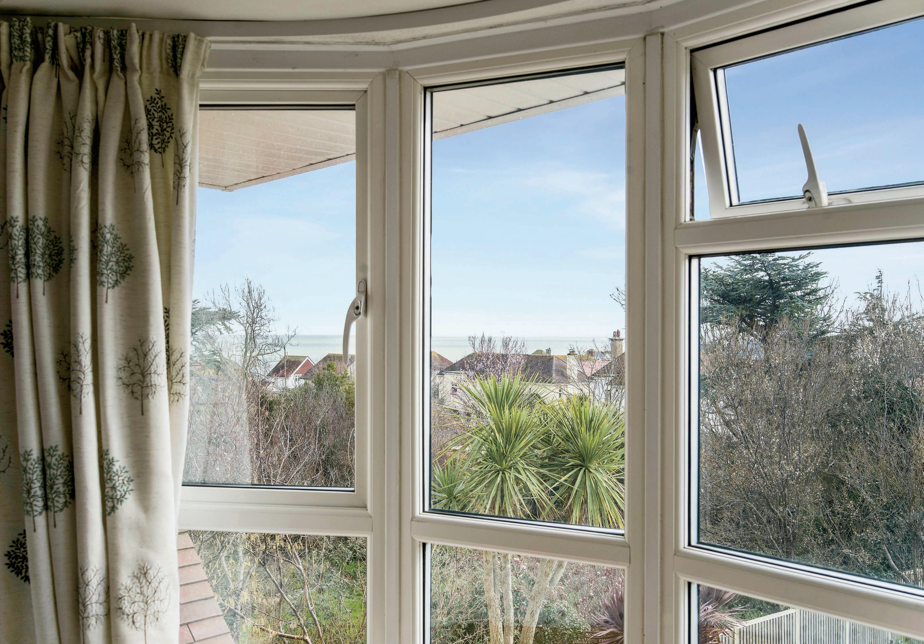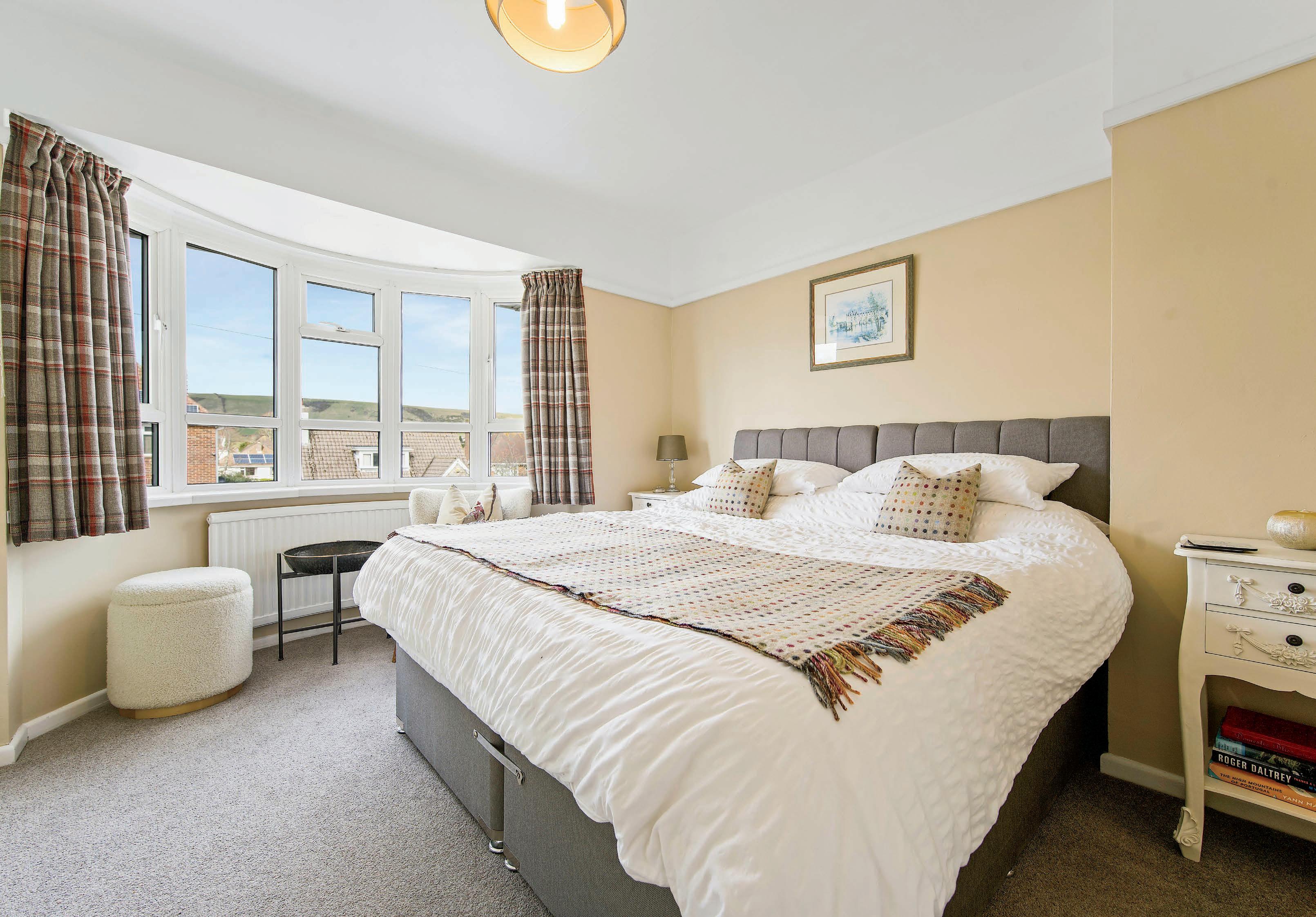 Upstairs there are four good sized double bedrooms, three including curved bay windows providing a charming aesthetic, with those to the rear looking over the garden and further to the sea beyond. The principal suite has a beautifully appointed ensuite shower room with feature tiling. The colours and finishes here are reflected in the generous family bathroom that includes a bath and separate walk-in shower.