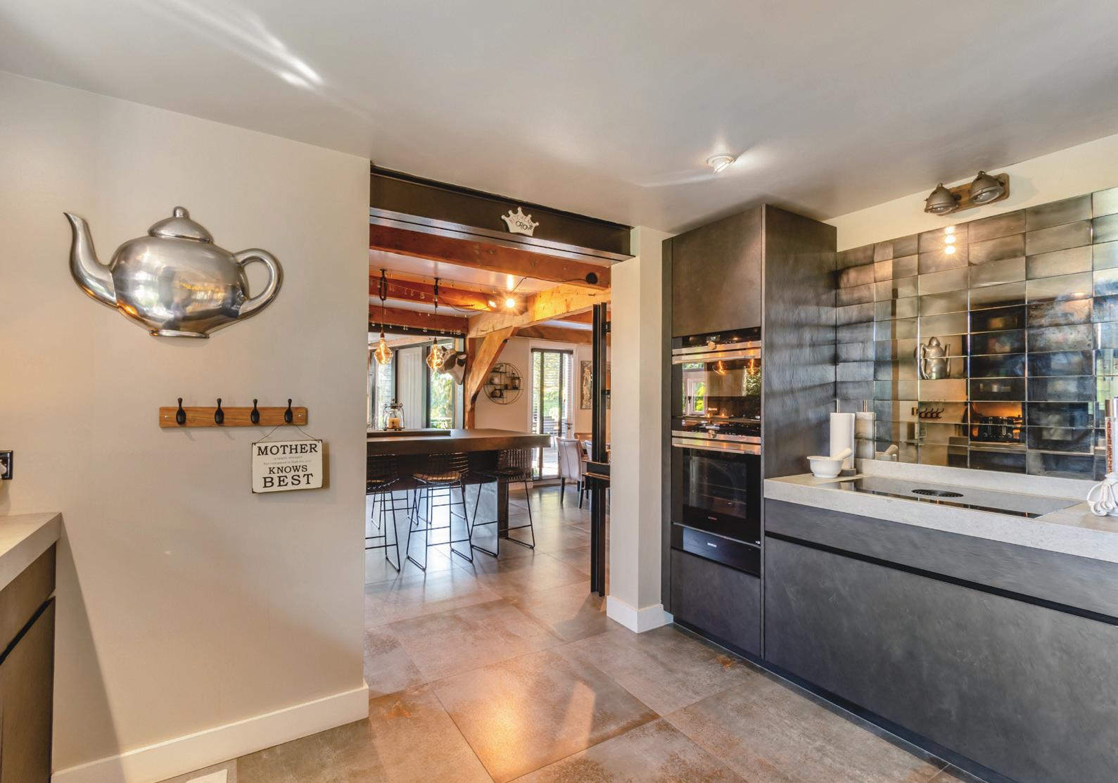 Kitchen At the heart of this home lies a Steven Christopher designed kitchen, exuding luxury with Rempp cabinetry, Dekton surfaces, and a stunning chef’s island. Equipped with Siemens appliances and a separate AGA, the space was refitted in 2021 and offers both beauty and functionality, complemented by an industrial lighting scheme.